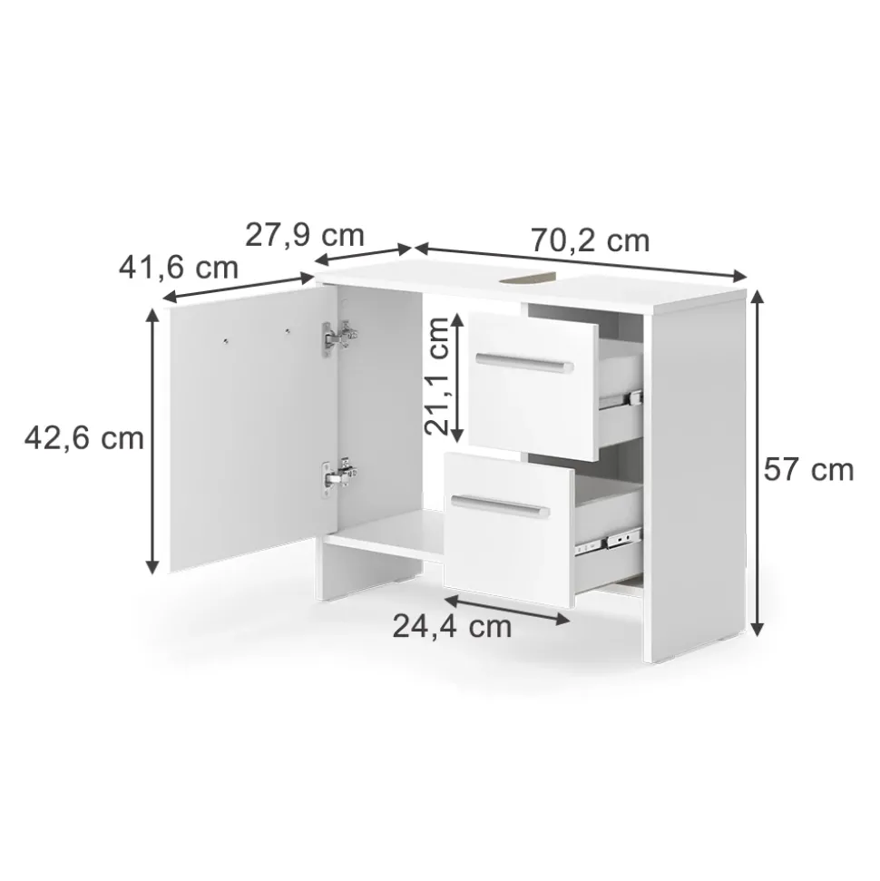 - Mit seinem praktischen Design und den kompakten Abmessungen passt der Waschtischunterschrank mit Schubladen perfekt in jedes Badezimmer.