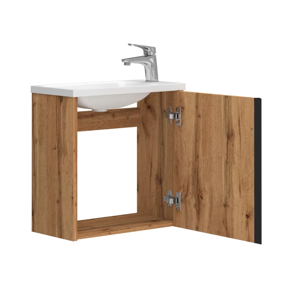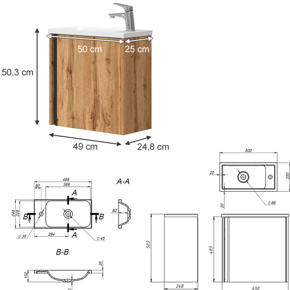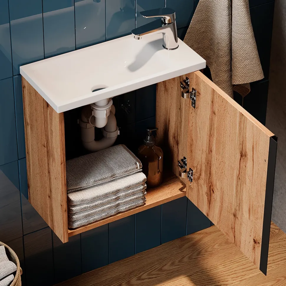 - Mit einer Tür, die mit „Häfele“-Soft-Close-Scharnieren ausgestattet ist, bietet er eine elegante Lösung für Ihren Waschtisch. Perfekte Funktionalität und Ästhetik in einem.