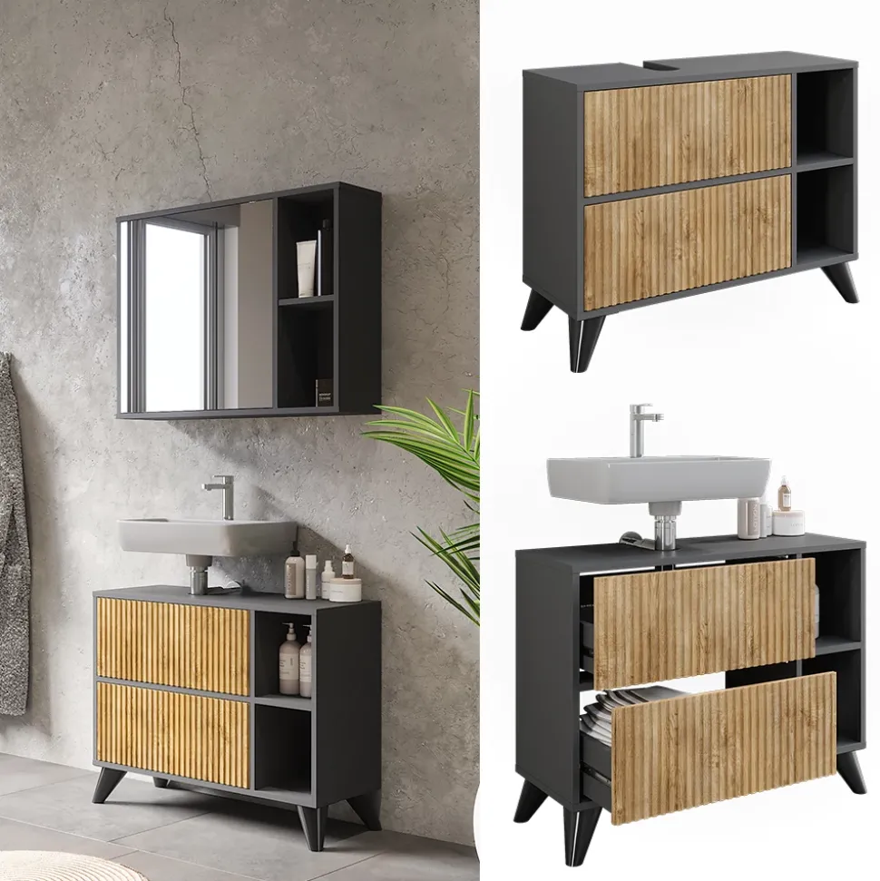 - MAßE: Der Unterschrank für das Badezimmer, mit 2 Schubladen, hat folgende Maße: Tiefe: 30 cm, Breite: 80 cm, Höhe: 62 cm. Die detaillierten Größen sind auf den Fotos angegeben.