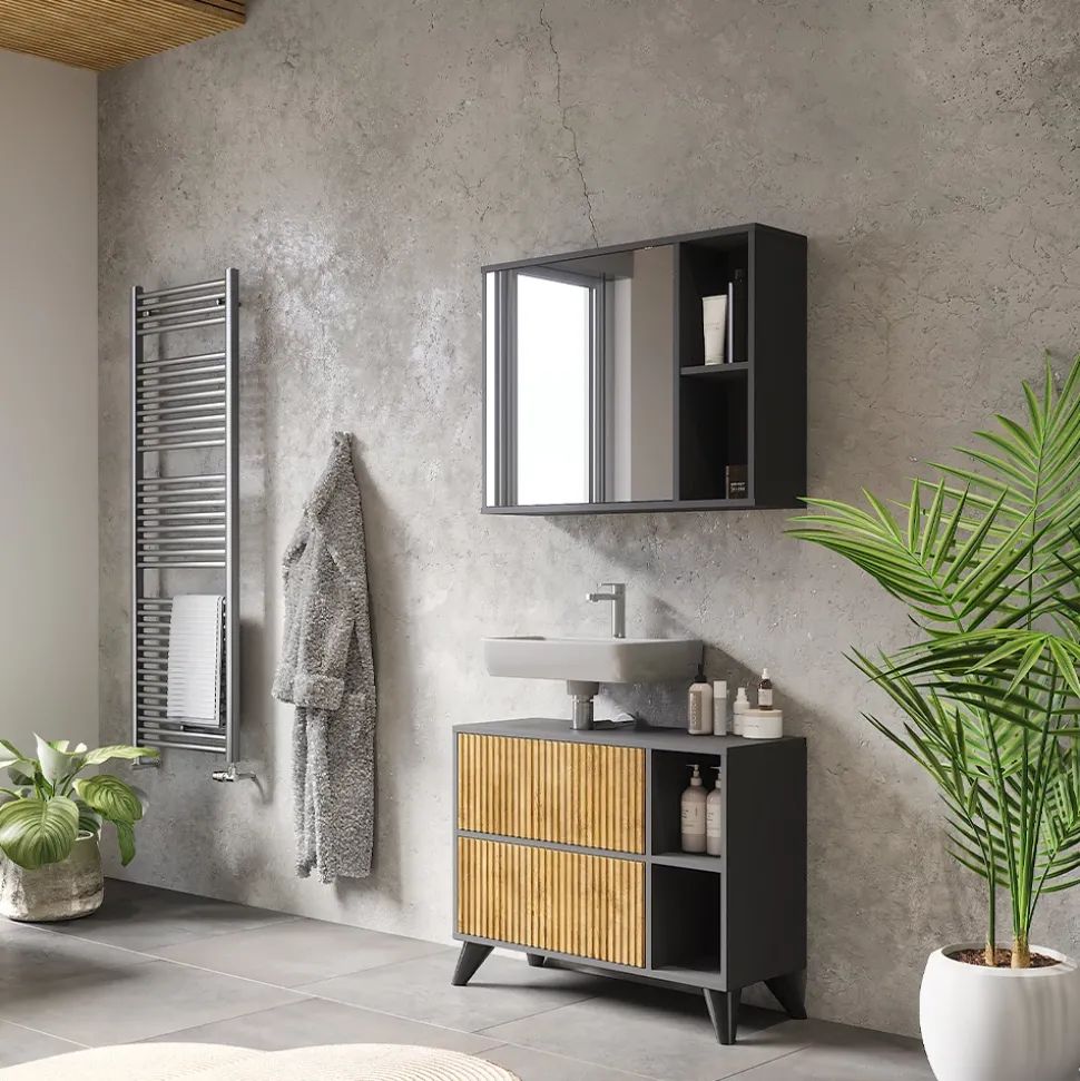- Der Waschtischunterschrank überzeugt mit innovativem Design und funktionaler Ausstattung für Ihr Badezimmer. Er bietet ausreichend Stauraum und verleiht Ihrem Waschbereich eine moderne Optik.