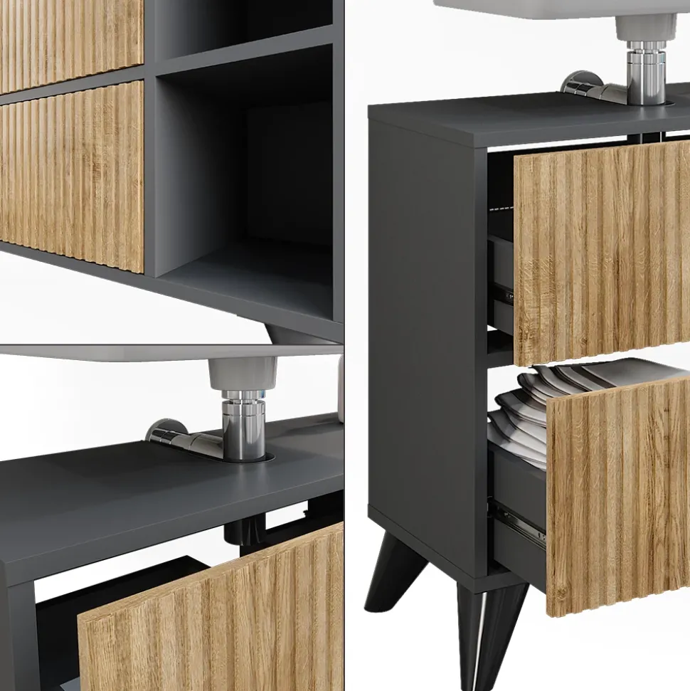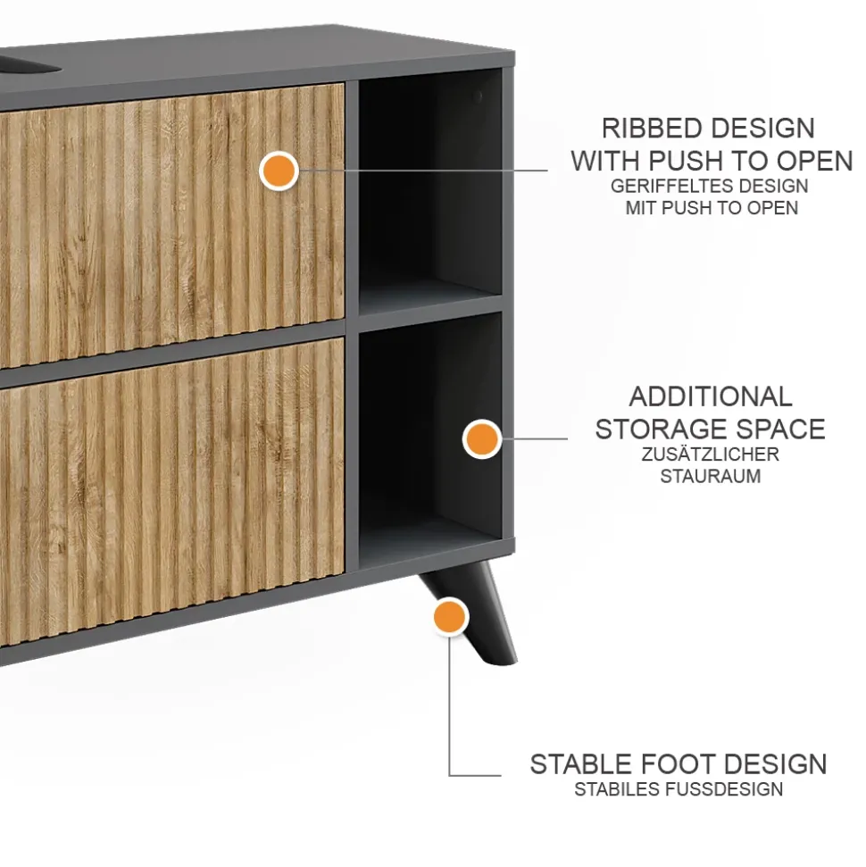 - MATERIAL: Der Waschbeckenunterschrank besteht aus einer pflegeleichten 16 mm Spanplatte.