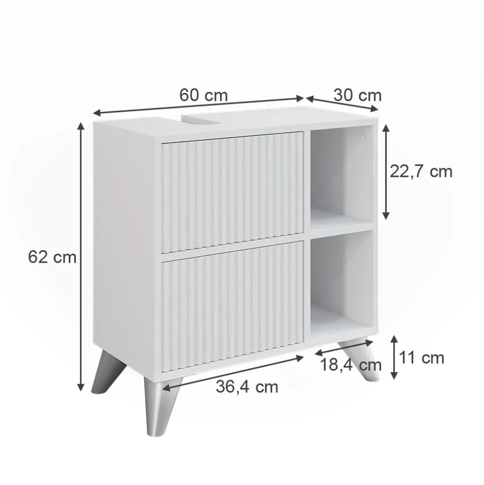 - MAßE: Der Unterschrank für das Badezimmer hat die folgenden Maße: Tiefe: 30 cm, Breite: 60 cm, Höhe: 62 cm. Die detaillierten Größen sind auf den Fotos angegeben.