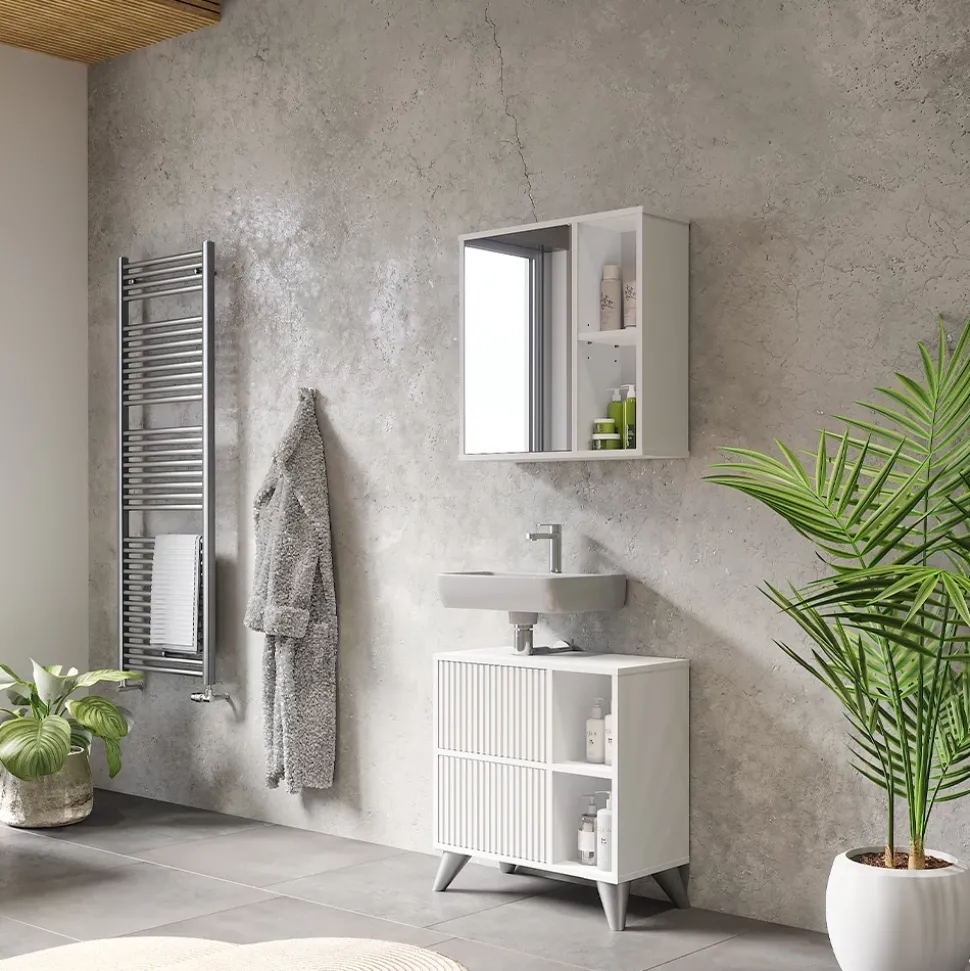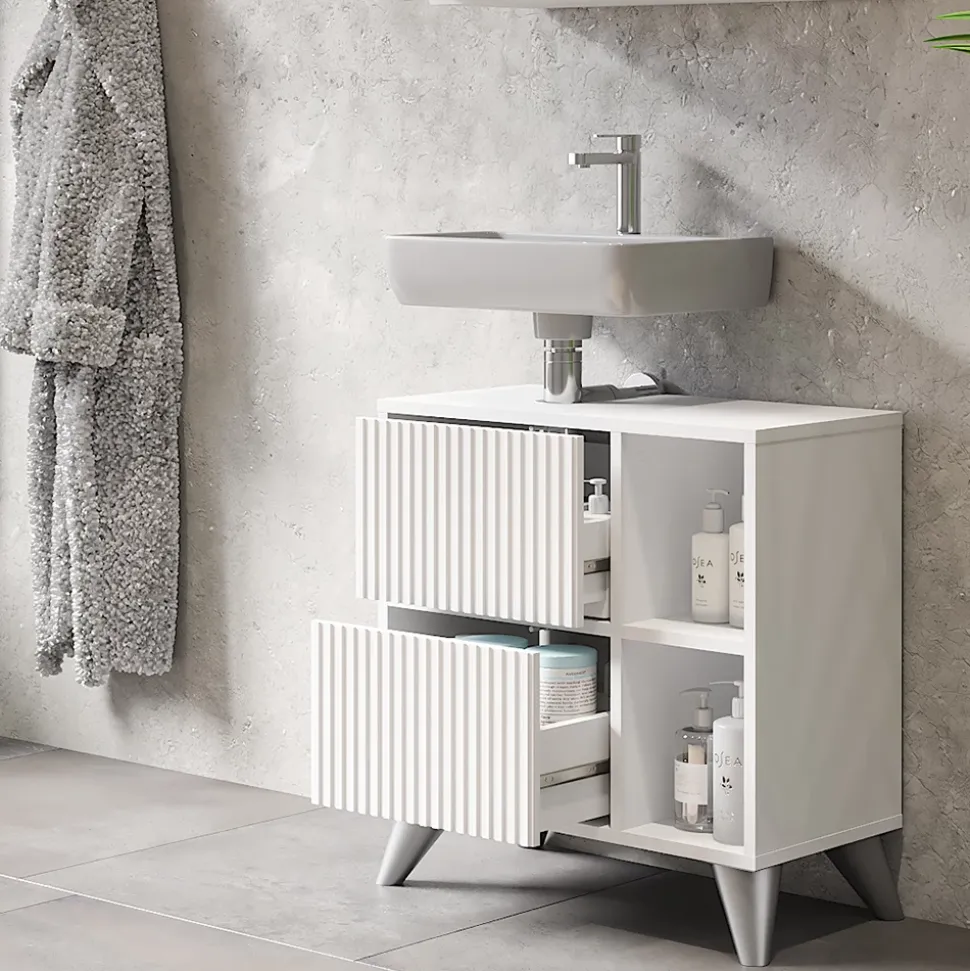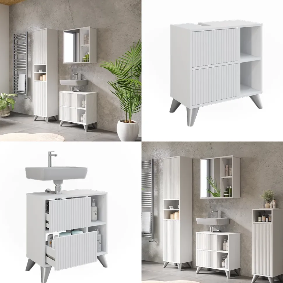 Der Waschbeckenunterschrank Leano ist die perfekte Lösung, um Ihr Badezimmer stilvoll und ordentlich zu gestalten. Mit seinem schlichten Design fügt er sich nahtlos in jede Badezimmereinrichtung ein und bietet dabei viel Stauraum für Ihre Pflegeprodukte und Handtücher. Die hochwertige Verarbeitung und die einfache Montage machen den Badunterschrank zu einem langlebigen und praktischen Möbelstück. Stellen Sie sich vor, wie entspannend es sein wird, morgens in ein aufgeräumtes und schön gestaltetes Badezimmer zu kommen – der Unterschrank Leano macht es möglich. Gönnen Sie sich diese tolle Ergänzung für Ihr Badezimmer und erleben Sie jeden Tag ein Gefühl von Ordnung und Komfort!