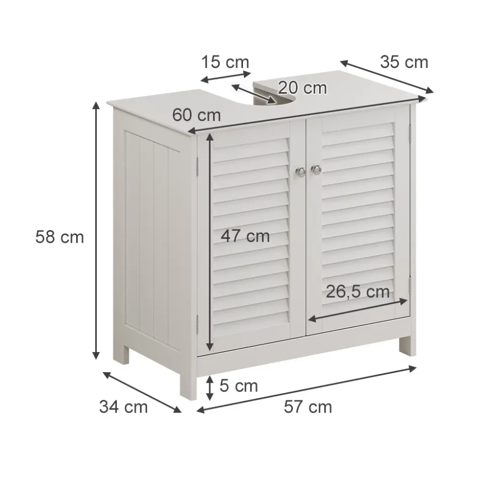 - PRODUKTMAßE: Der Badezimmerschrank misst 60 x 58 x 35 cm (BxHxT). Der Siphonausschnitt beträgt 15 x 20 cm. Trotz seiner Größe wiegt er nur leichte 10 kg.