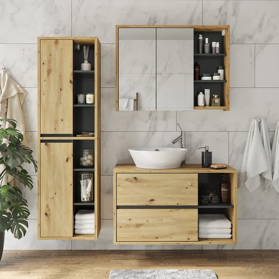 - MATERIAL: Der Badunterschrank besteht aus pflegeleichter Spanplatte 16 mm, mit einer Melaminharzbeschichtung