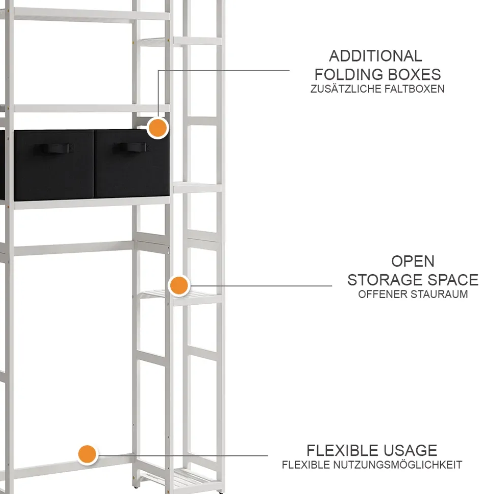 - Der Aufbewahrungsschrank bietet ausreichend Platz für Ihre Gegenstände und sorgt für Ordnung in Ihrem Zuhause. Das seitliche Regal ist beidseitig montierbar.
