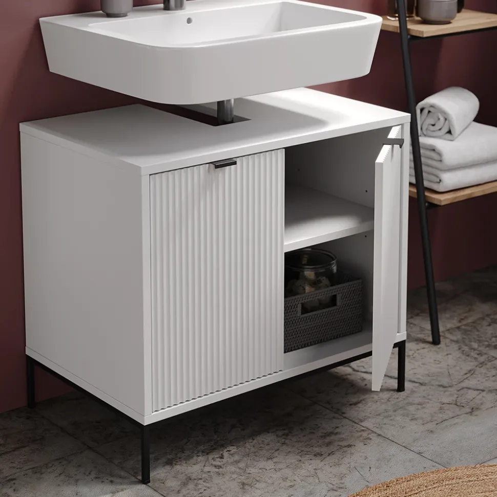 - Verleihen Sie Ihrem Badezimmer Eleganz mit dem Waschtischunterschrank Eliza. 2 Türen bieten effektiven Stauraum für Ihre Badezimmerutensilien – ein idealer Schrank für das Bad.