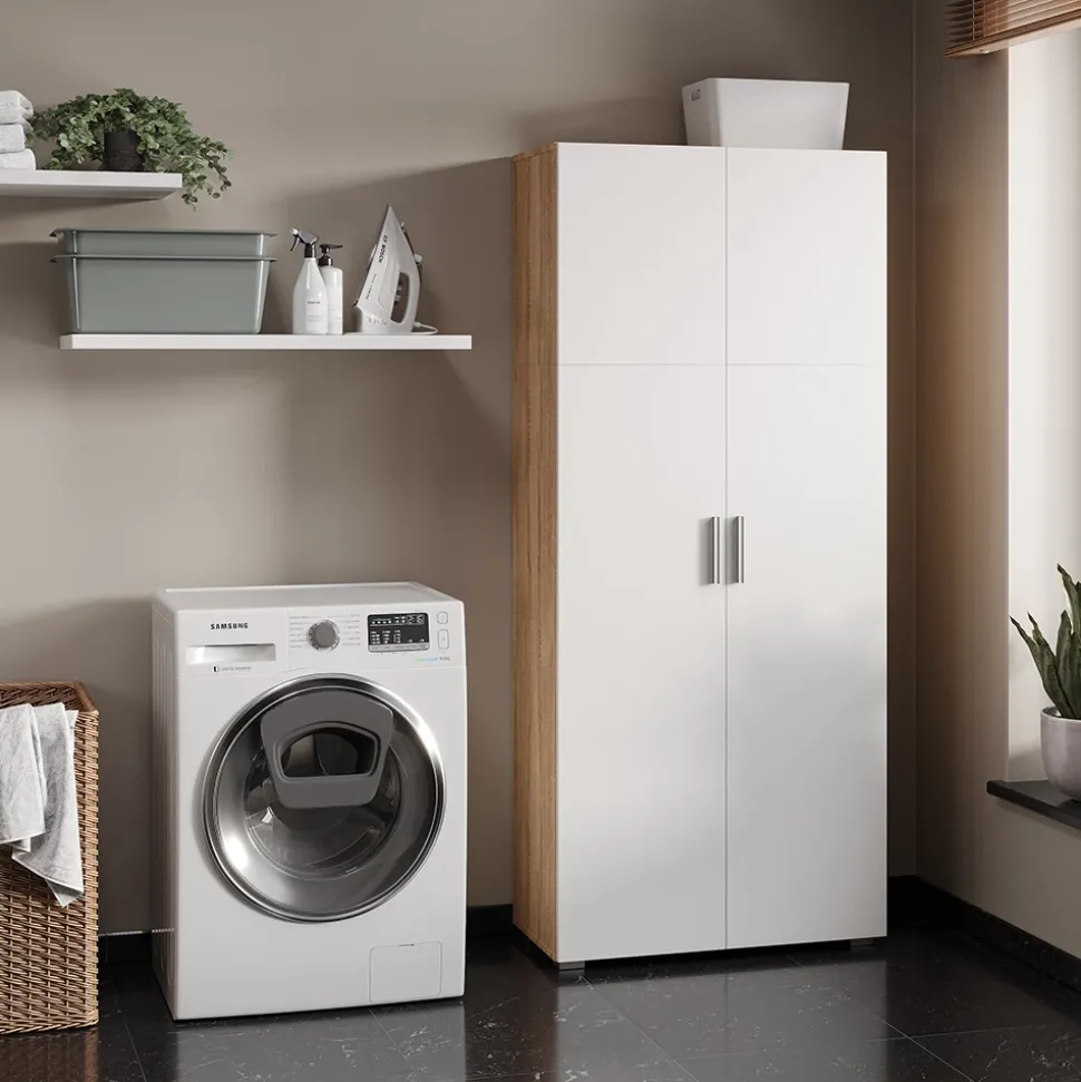 - MATERIAL: Der Mehrzweckschrank besteht aus pflegeleichter Spanplatte 16 mm, mit einer Melaminharzbeschichtung