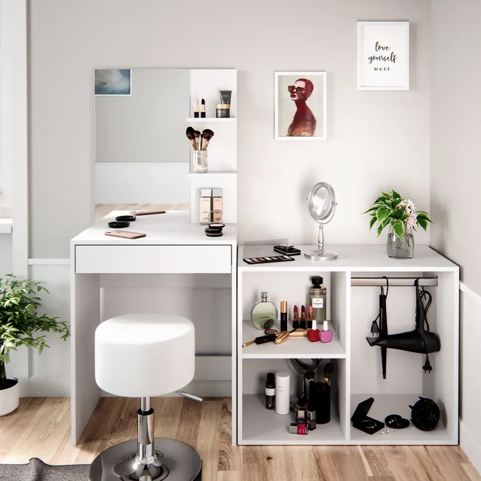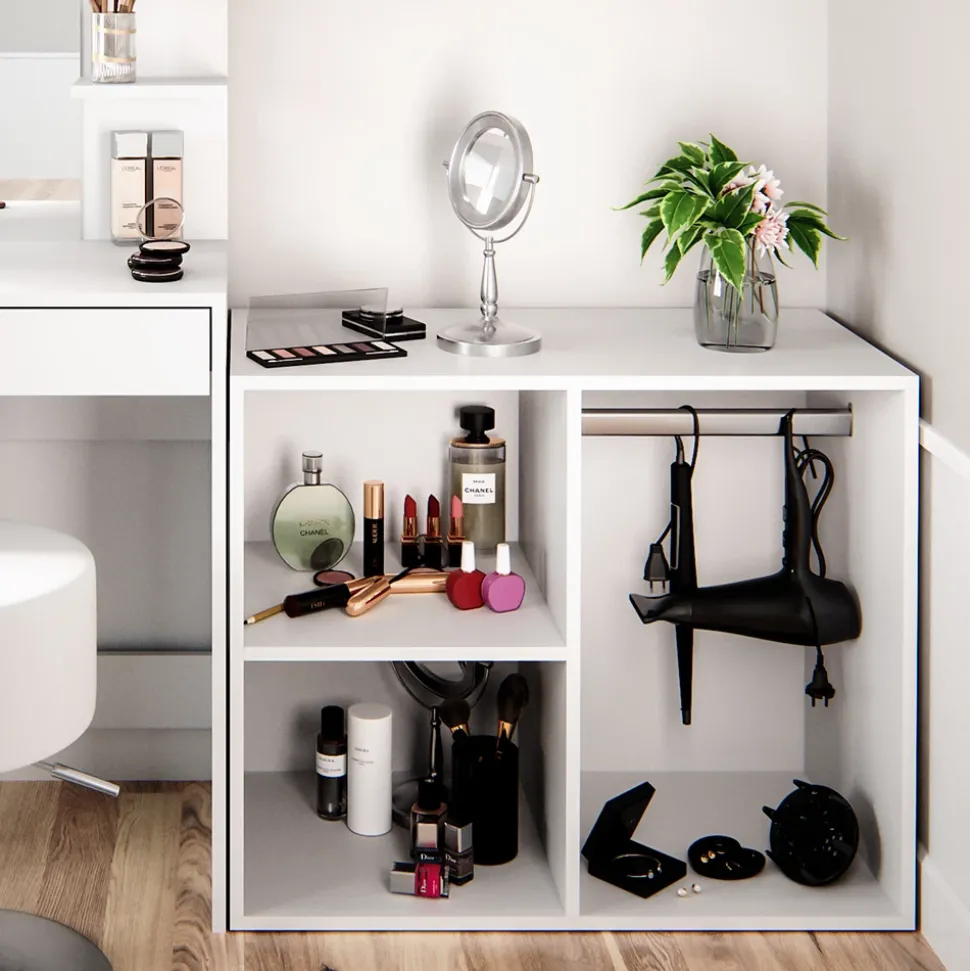 - Unser Beistellschrank für den Kosmetiktisch „Isabelle“ ist eine gute Entscheidung für jeden Schminktisch. Mit seinem optimalen Design bietet er Freude an der Benutzung.