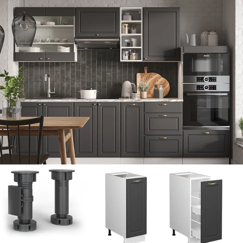 - Fame-Line Küchenschränke bieten Premium-Qualität mit stabilen Metallgriffen, praktischen Soft-Closing-Scharnieren und Metall-Vollauszügen zu fairen Preisen.