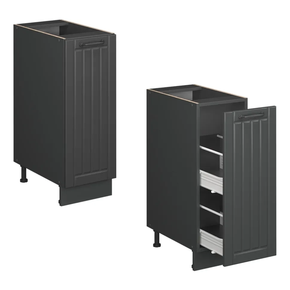Der Fame-Line – Apothekerunterschrank ist die perfekte Wahl für alle, die ihre Küche multifunktional gestalten möchten. Egal in welcher Funktion – dieser Unterschrank bietet genügend Stauraum für alle Bedürfnisse. Durch die Möglichkeit, zusätzliche Module dazuzukaufen und das Modul nach Belieben umzustellen, wird der Apothekerunterschrank zu einem flexiblen Element in der Küche. Die MDF-Fronten und Soft-Close-Scharniere sorgen für eine zeitlose Optik und angenehme Bedienung. Holen Sie sich mit dem Fame-Line – Küchenschrank ein Möbelstück, das nicht nur funktional ist, sondern auch ein Hingucker in Ihrer Küche wird.