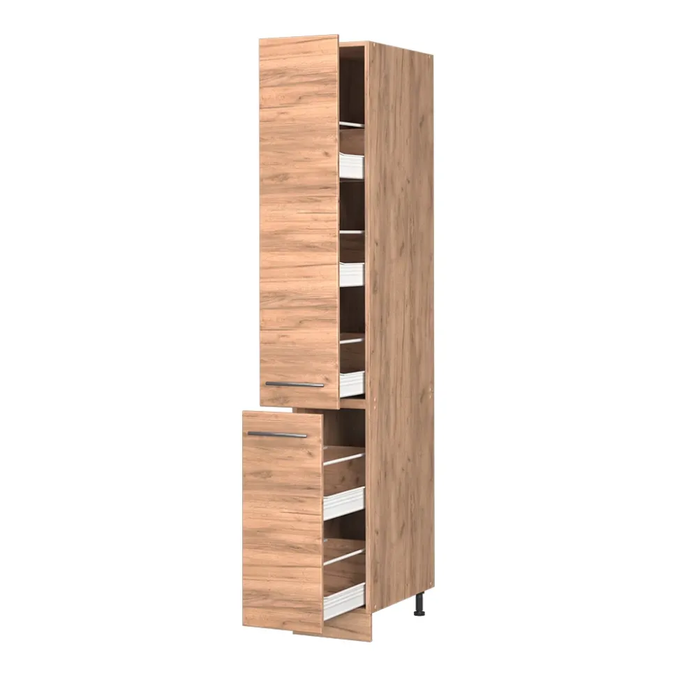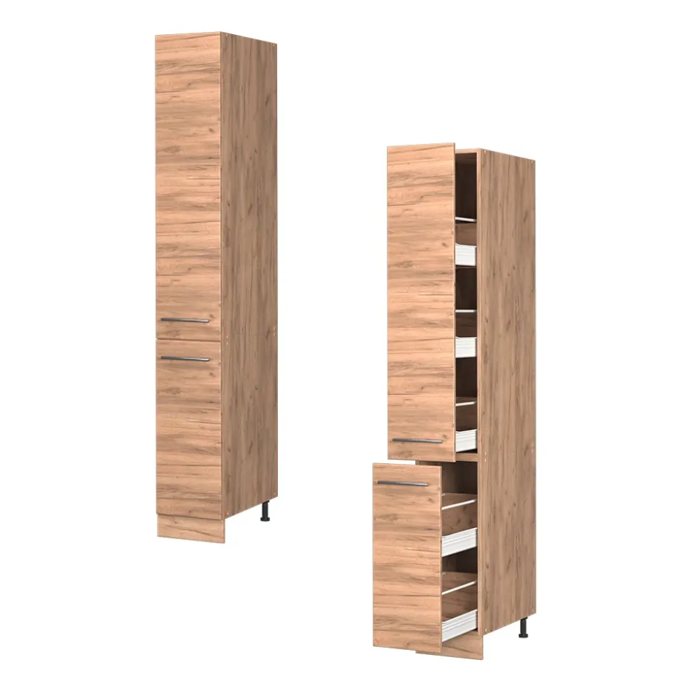 Mit dem Apothekerhochschrank aus der Fame-Line – Serie setzen Sie ein Statement in Ihrer Küche! Der hochwertige Küchenschrank bietet Platz für Allerlei und sorgt für Ordnung in Ihrem Haus. Doch nicht nur das: Der Küchenhochschrank ist ein echter Hingucker und fügt sich perfekt in Ihre Kücheneinrichtung ein. Dank der Soft-Close-Scharniere ist er nicht nur funktional, sondern auch ästhetisch ein Highlight. Die Module der Serie sind in verschiedenen Konfigurationen erhältlich und lassen sich nach Belieben umstellen – so haben Sie immer genug Platz und Stauraum zur Verfügung. Machen Sie mit dem Fame-Line – Apothekerhochschrank Ihre Küche komplett und profitieren Sie von höchster Qualität und Design!