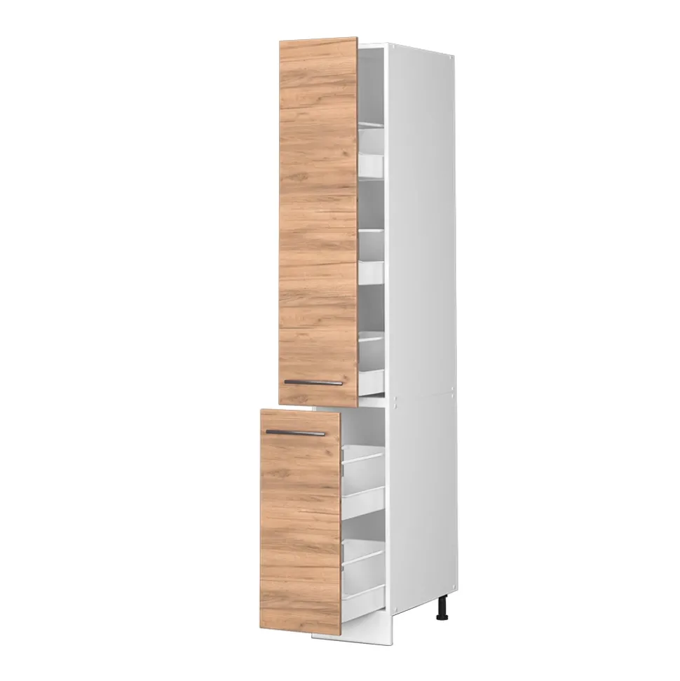 Mit dem Apothekerschrank aus der Fame-Line Serie setzen Sie ein Statement in Ihrer Küche! Der hochwertige Küchenschrank bietet Platz für Ihre Medikamente und sorgt für Ordnung in Ihrem Haus. Doch nicht nur das: Der Hochschrank Küche ist ein echter Hingucker und fügt sich perfekt in Ihre Kücheneinrichtung ein. Dank der hochwertigen Fronten und Soft-Close-Scharniere ist der Medizinschrank nicht nur funktional, sondern auch ästhetisch ein Highlight. Die Serie ist in verschiedenen Konfigurationen erhältlich und lässt sich nach Belieben umstellen – so haben Sie immer genug Platz und können zusätzliche Module beziehen. Machen Sie mit dem Fame-Line Apothekerschrank Ihre Küche komplett und profitieren Sie von höchster Qualität und Design!