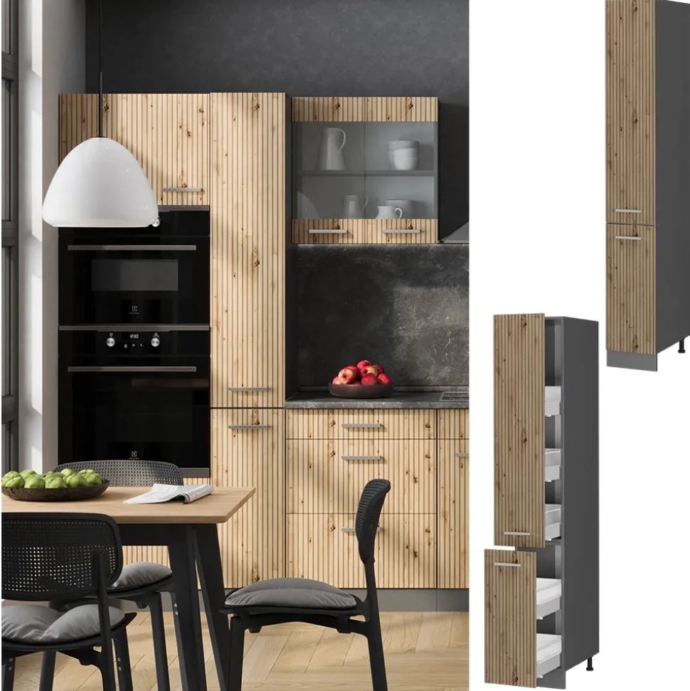 - Unser Hochschrank für die Küche „R-Line“ ist eine optimale Wahl für jede Küche mit seinem universellen Design und der erfreulichen Benutzererfahrung.