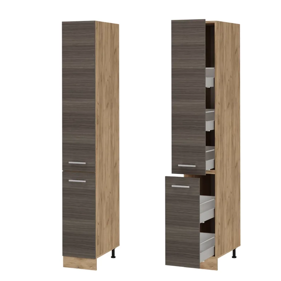 - MAßE: Der Küchenschrank hoch hat eine Breite von 30 cm, eine Höhe von 207 cm und eine Tiefe von 57,2 cm. Alle detaillierten Größen sind auf den Fotos angegeben.