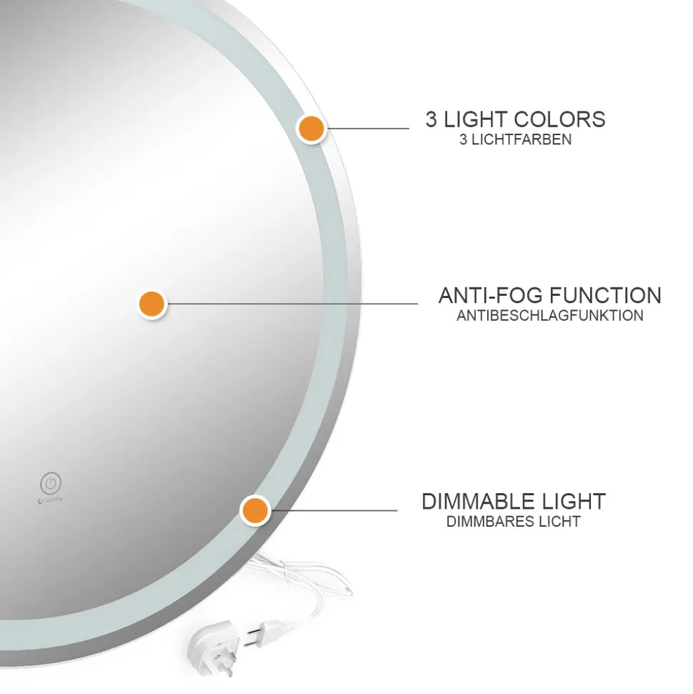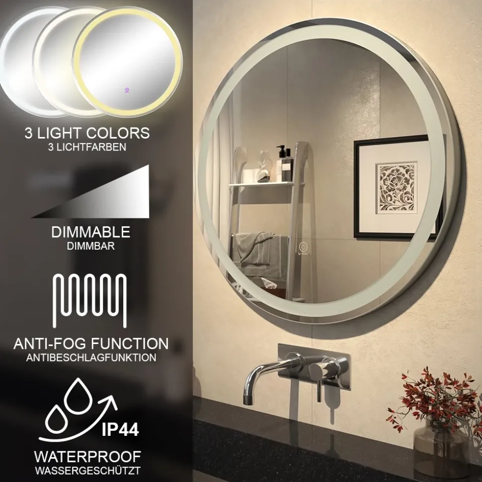 - Der LED-beleuchtete Spiegel zeichnet sich durch energiesparende LED-Beleuchtung und ein modernes Design aus. Er sorgt für eine helle und gleichmäßige Ausleuchtung im Badezimmer oder Schlafzimmer.
