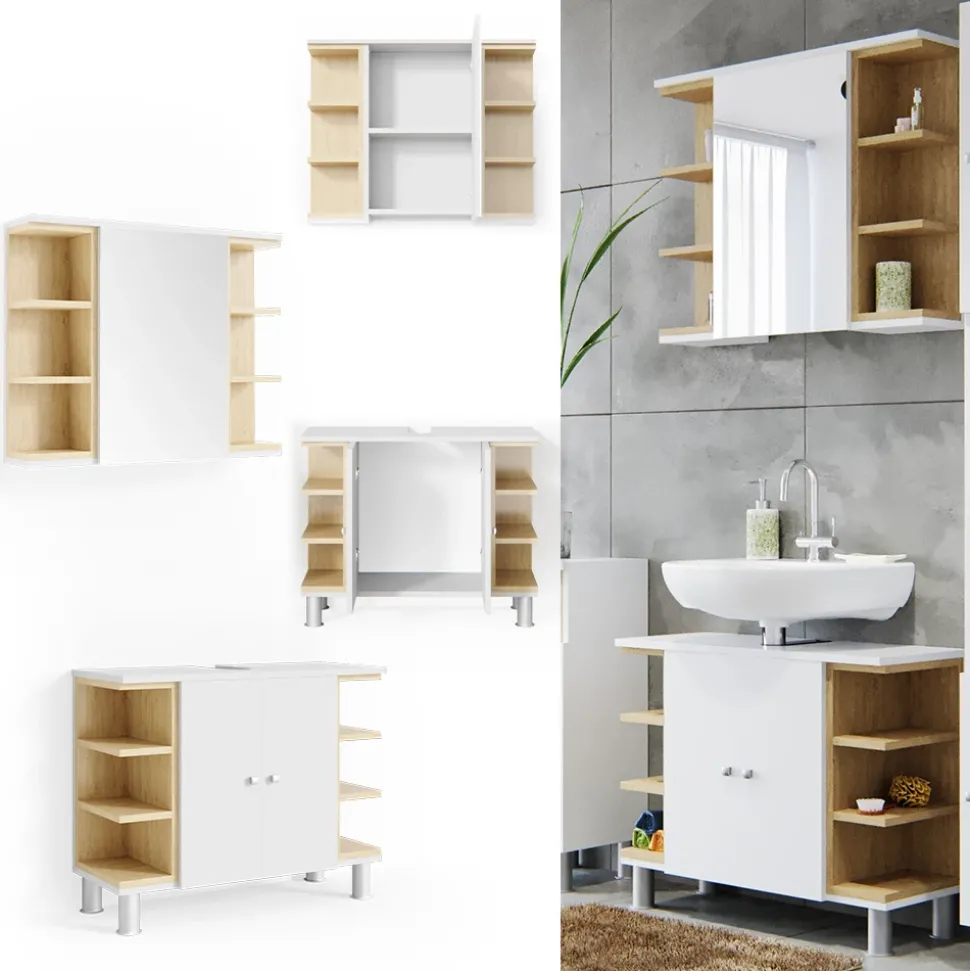 - MATERIAL: Das Set mit dem Spiegelschrank besteht aus pflegeleichter Spanplatte 16 mm, mit einer Melaminharzbeschichtung