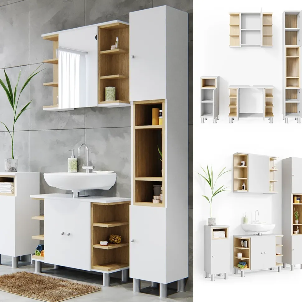 - LIEFERUMFANG: Badschrank, Bad Spiegelschrank, Waschbeckenunterschrank, Midischrank, Montageanleitung, Montagematerial.