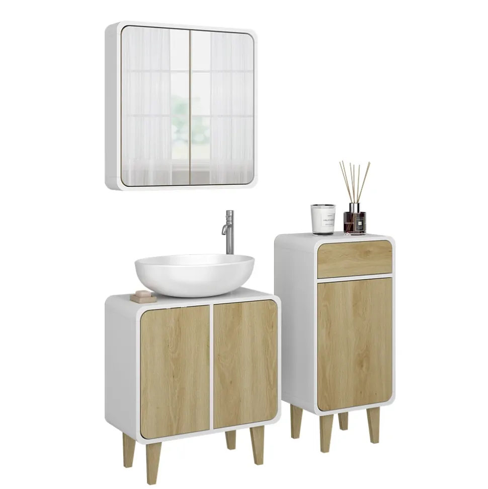 - Das Badezimmerschrank-Set bietet Stauraum für Pflegeprodukte und Handtücher, während das moderne Design eine stilvolle Ergänzung für Ihr Badezimmer darstellt.