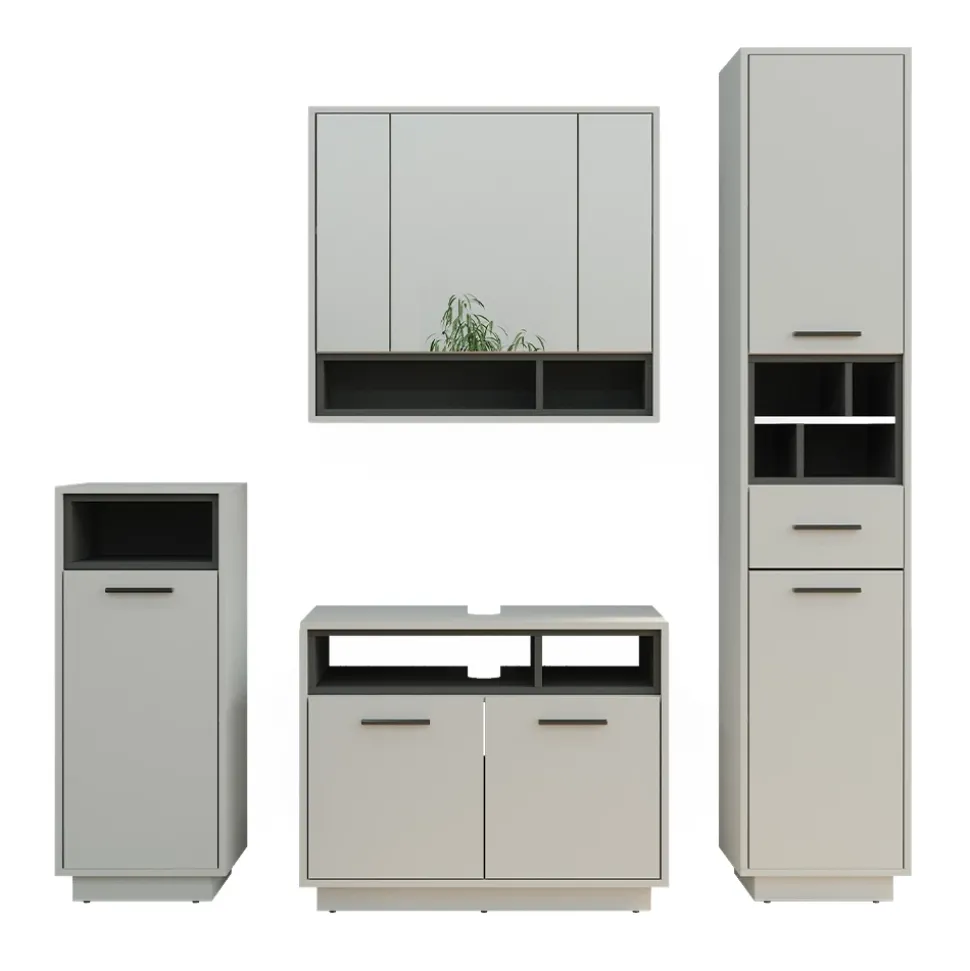 - Das Badezimmerschrank-Set bietet eleganten Stauraum und lässt sich mit anderen Sets der Serie kombinieren. Es ist die perfekte Wahl für jeden Badezimmerstil.