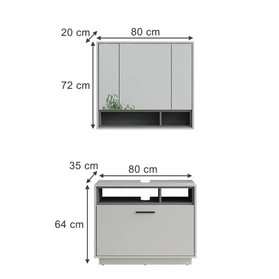- LIEFERUMFANG: Waschbeckenunterschrank, Spiegelschrank, Montageanleitung, Montagematerial (Dekoration nicht enthalten)