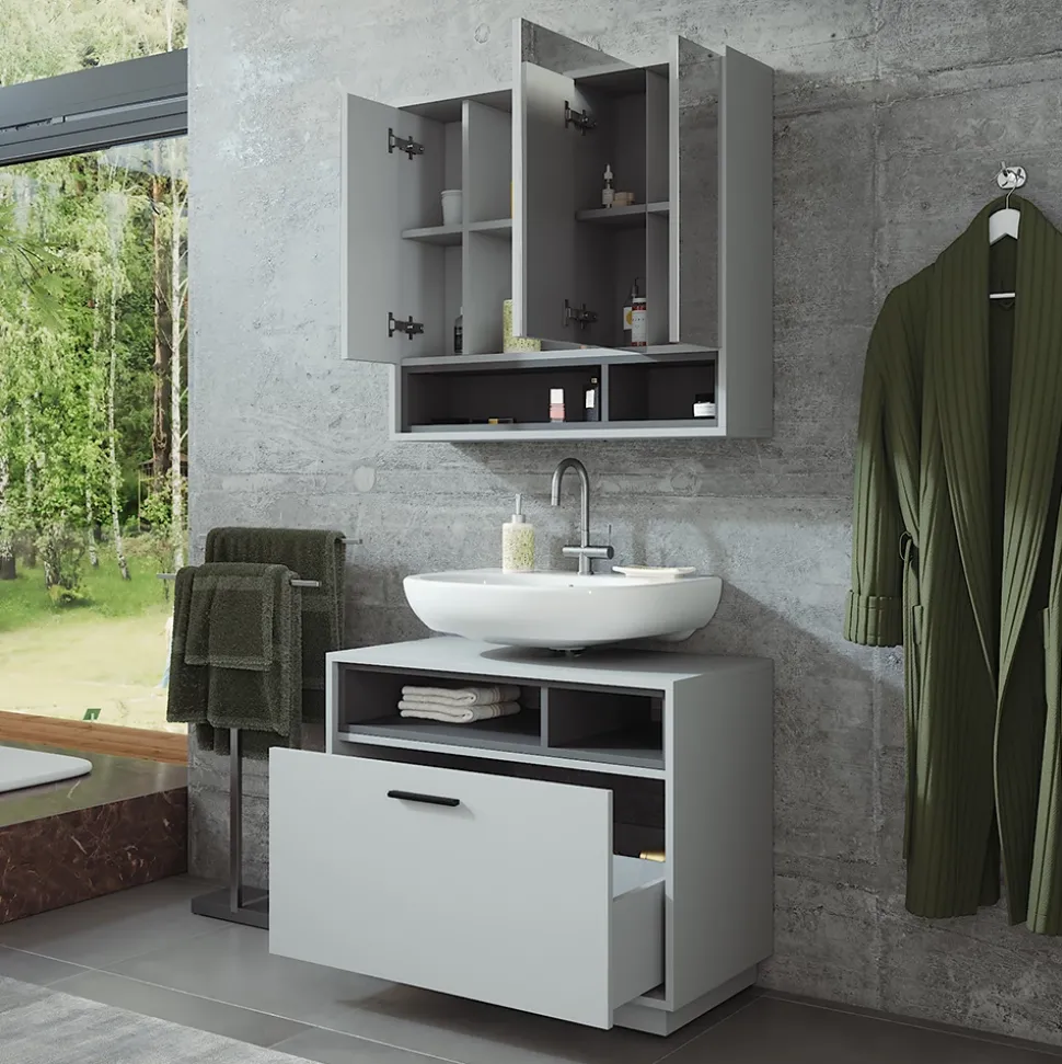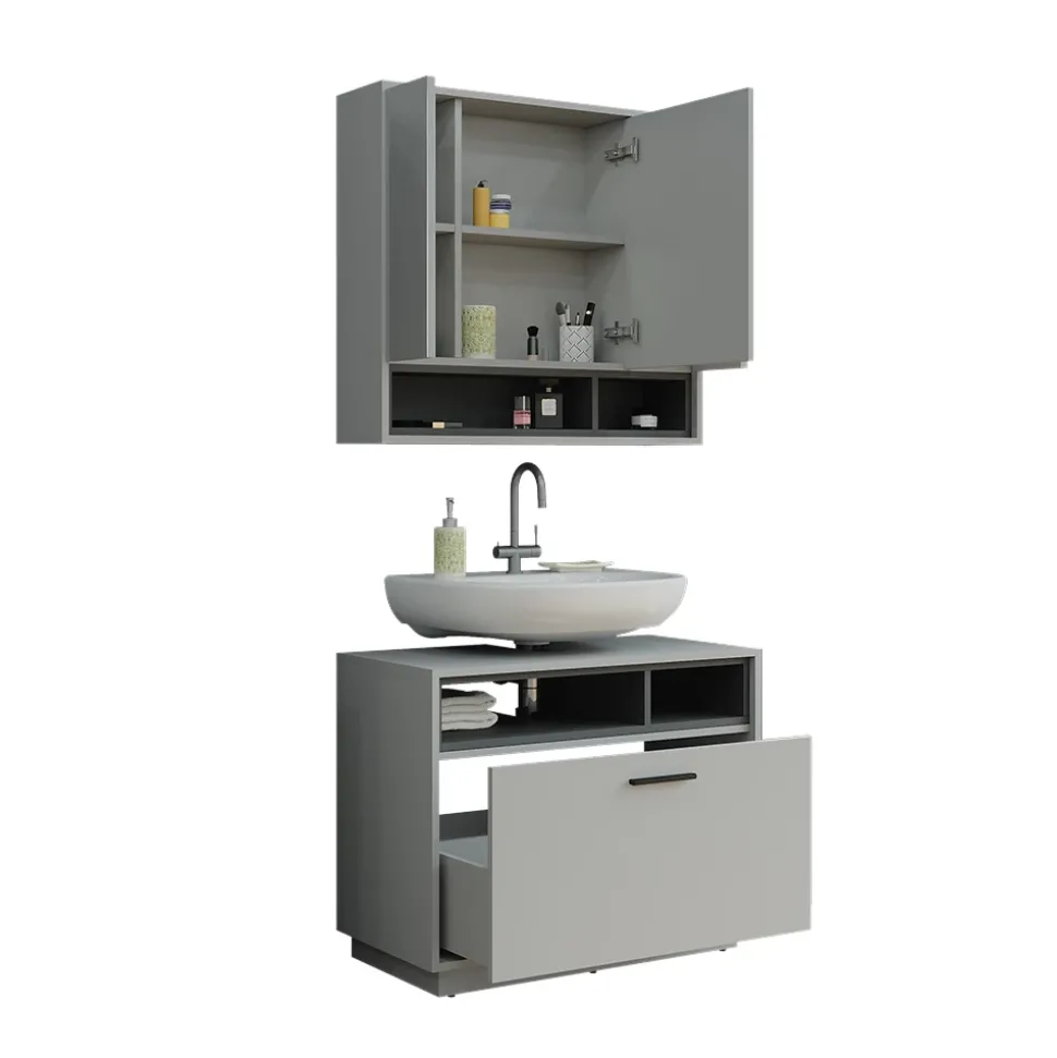 - Das Badezimmerschrank-Set bietet viel Stauraum für Ihre Badutensilien und Accessoires. Es ist die perfekte Lösung für eine organisierte und aufgeräumte Badezimmereinrichtung.