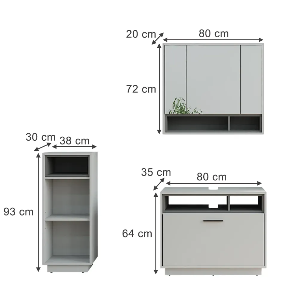 - LIEFERUMFANG: Waschbeckenunterschrank, Spiegelschrank, Midischrank, Montageanleitung, Montagematerial (Dekoration nicht enthalten)