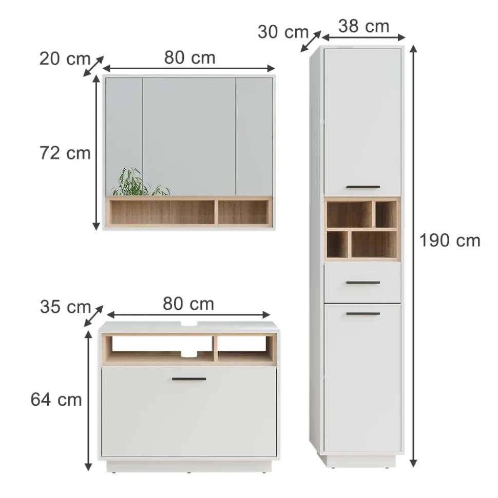 - LIEFERUMFANG: Waschbeckenunterschrank, Spiegelschrank, Hochschrank, Montageanleitung, Montagematerial (Dekoration nicht enthalten)