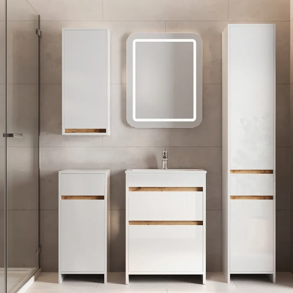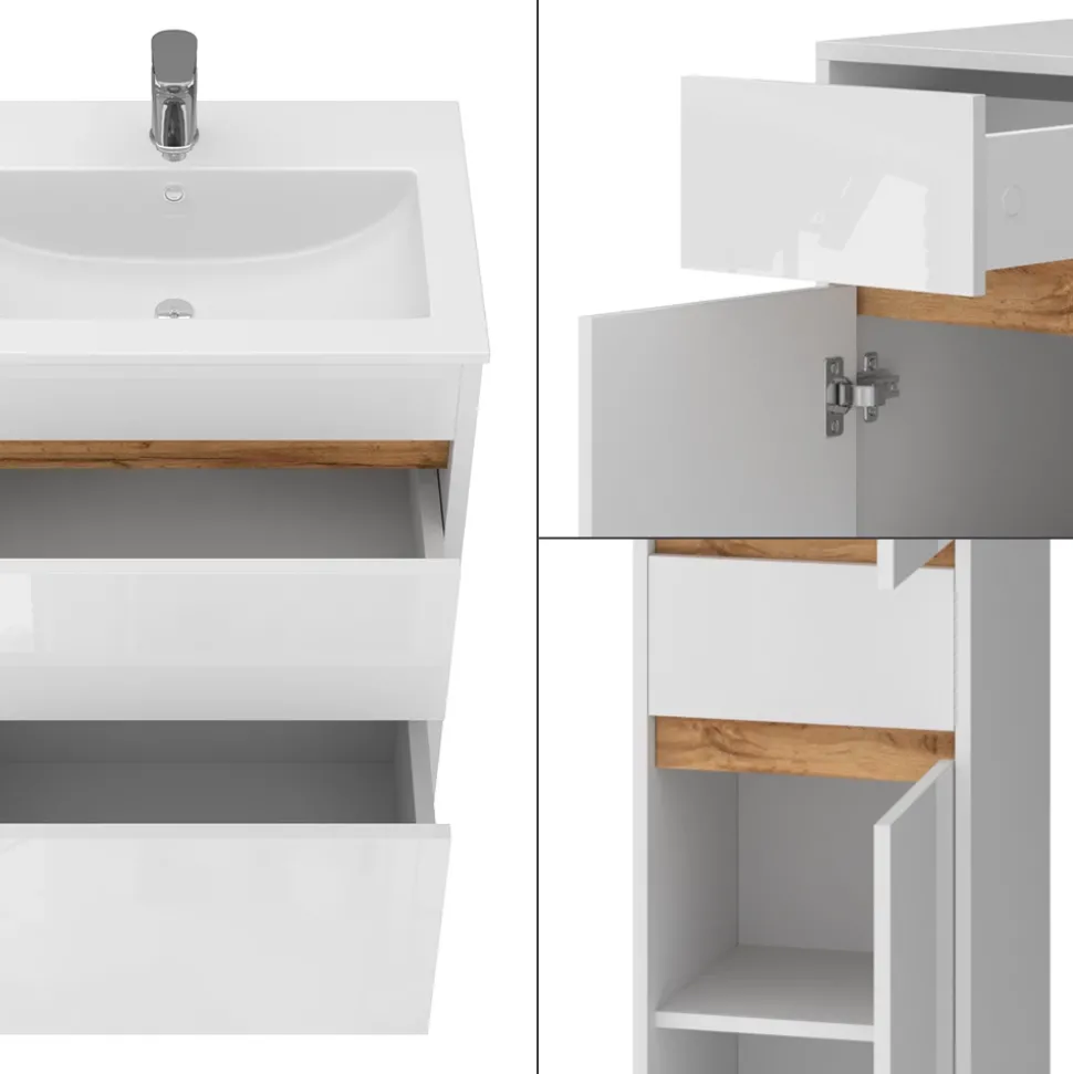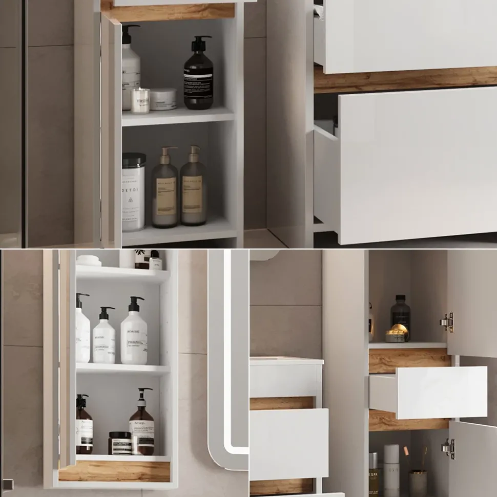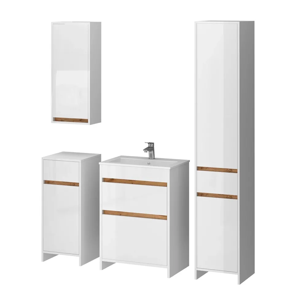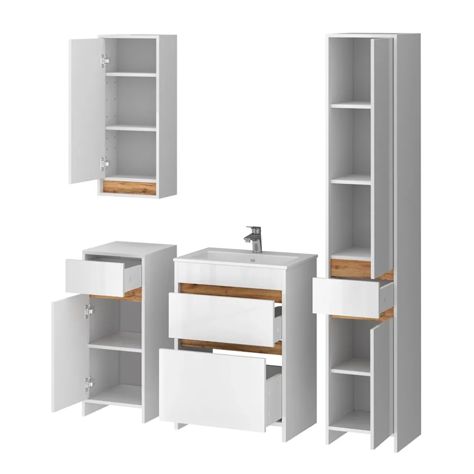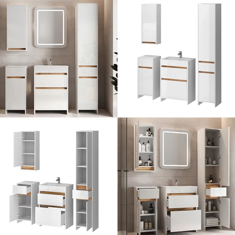 - LIEFERUMFANG: Waschbeckenunterschrank, Waschbecken, Hängeschrank, Hochschrank, Midischrank, Montageanleitung, Montagematerial