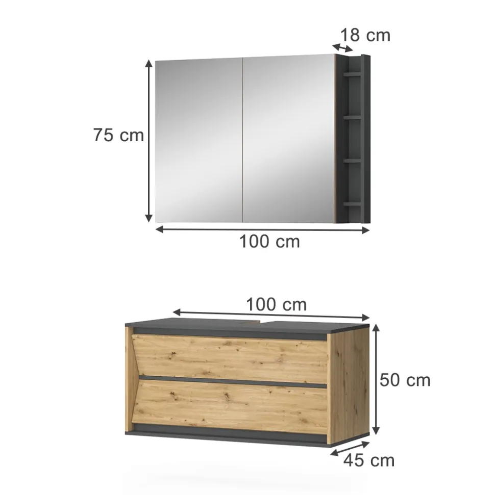 Waschbeckenunterschrank: 100 x 50 x 45 cm (BxHxT)