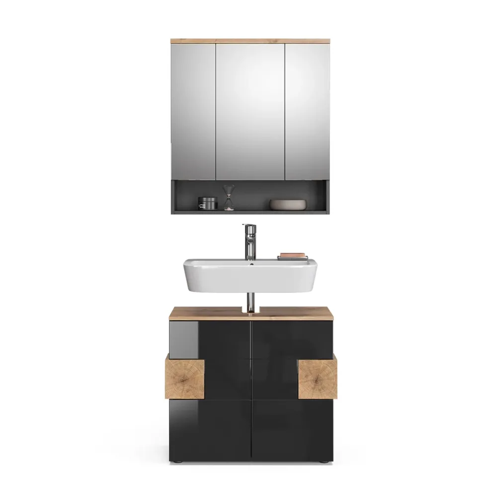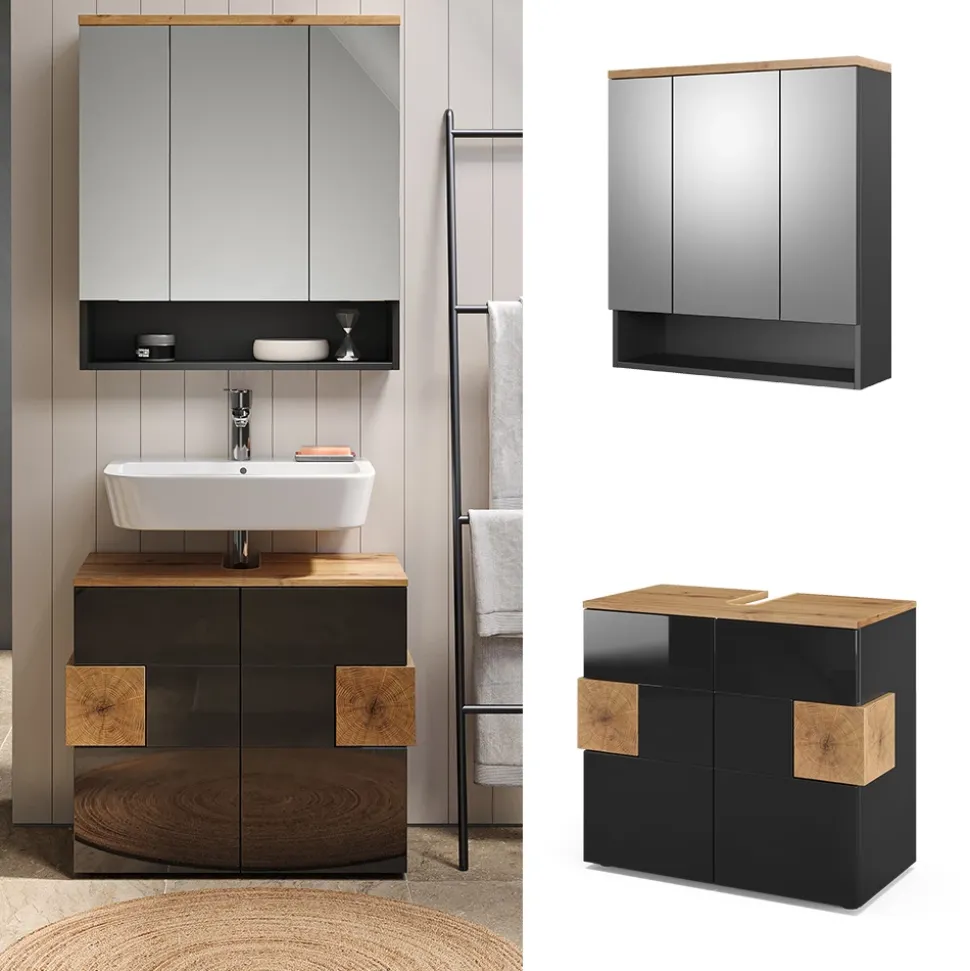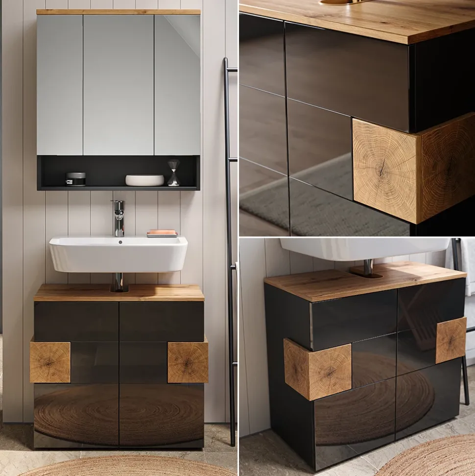 - Der Badezimmerschrank-Set bietet griffloses Fassadendesign und reichlich Stauraum. Sie können verschiedene Sets der Serie kombinieren.