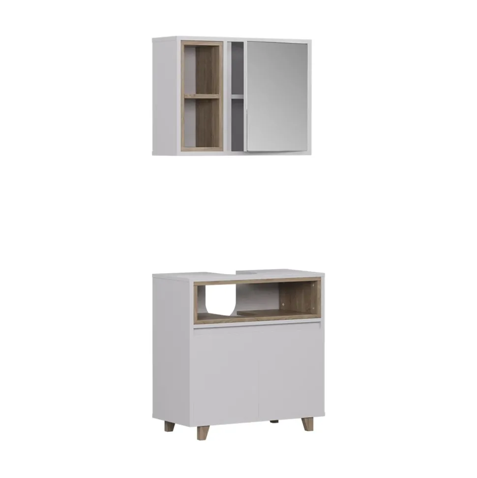 Machen Sie Ihr Badezimmer zu einer echten Wohlfühloase mit dem praktischen Badmöbel-Set Elnor. Dieses 2-teilige Set, bestehend aus einem Waschbeckenunterschrank und einem Spiegelschrank, überzeugt nicht nur durch sein funktionelles Design, sondern auch durch seine hochwertige Verarbeitung. Die grifflosen Türen sorgen für einen modernen Look und lassen das Set nahtlos in jedes Badezimmer integrieren. Zudem können Sie das Set ganz einfach mit anderen Artikeln der Kollektion Elnor erweitern und somit Ihren individuellen Stil unterstreichen. Gönnen Sie sich etwas Besonderes und verwandeln Sie Ihr Badezimmer in eine stilvolle Wohlfühloase!