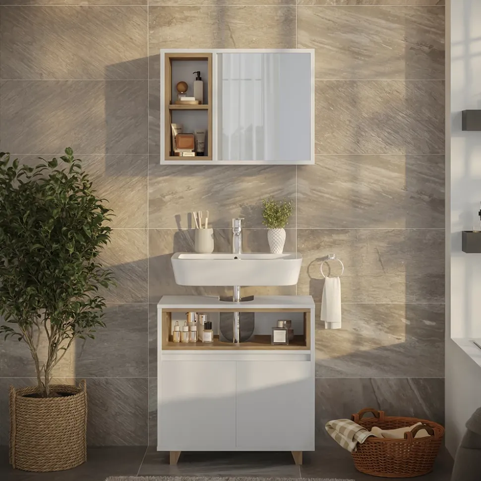 - MATERIAL: Unser Set mit Spiegelschrank besteht aus pflegeleichter MDF, das leicht zu pflegen ist und eine lange Lebensdauer garantiert.