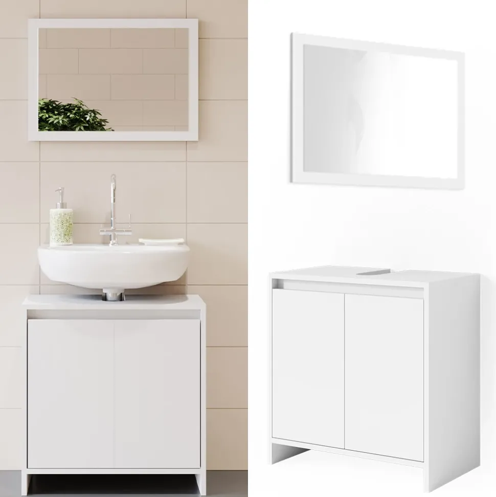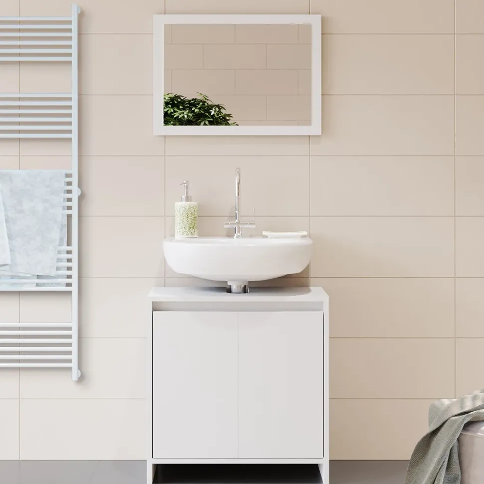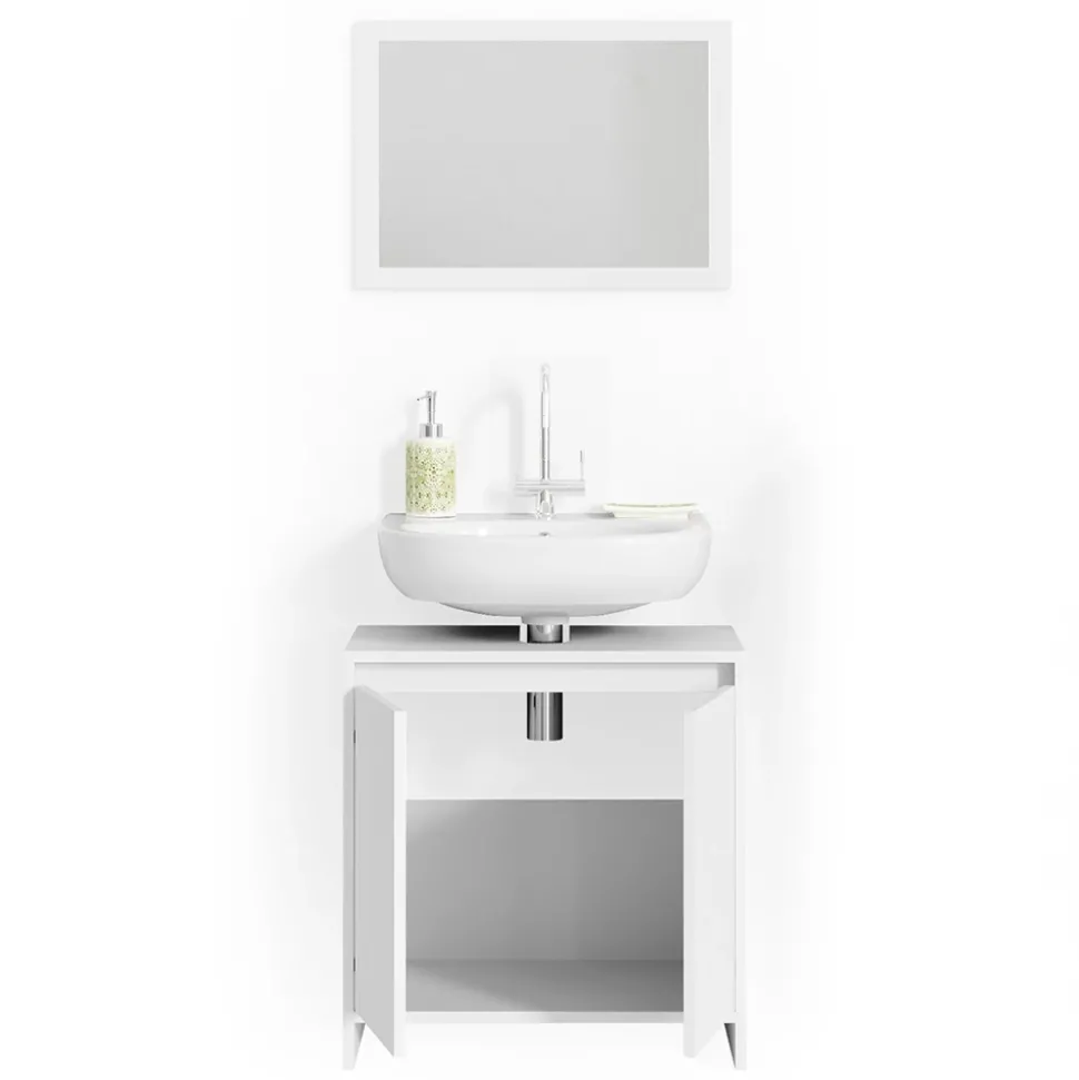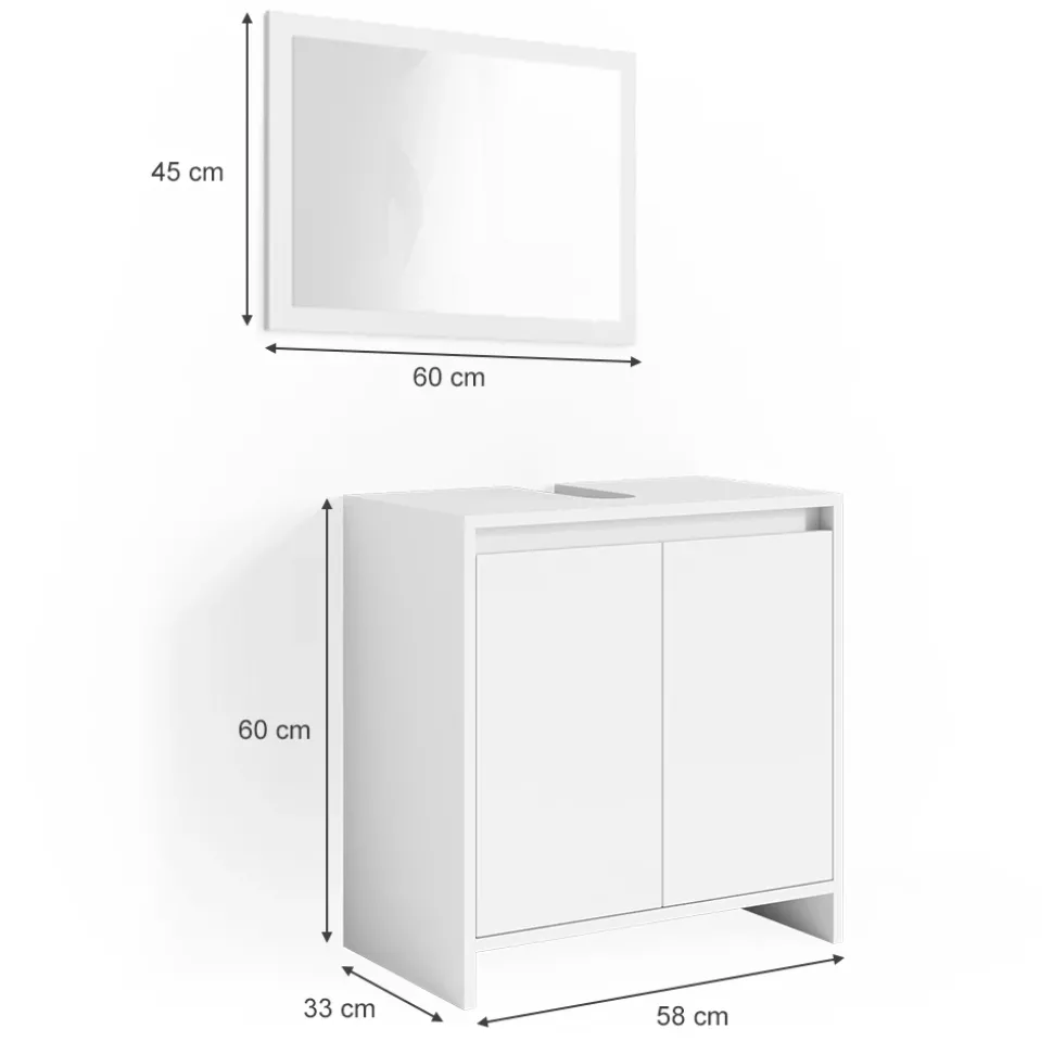 - LIEFERUMFANG: Badezimmerspiegel, Waschbeckenunterschrank, Montageanleitung, Montagematerial.