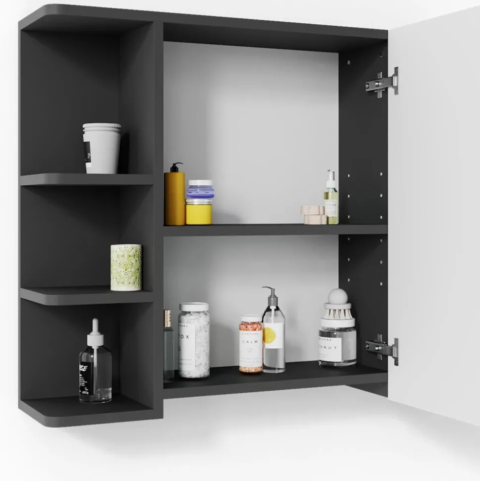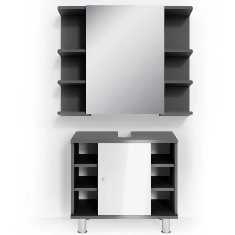 - MATERIAL: Das Set mit dem Spiegelschrank besteht aus pflegeleichter Spanplatte 16 mm, mit einer Melaminharzbeschichtung