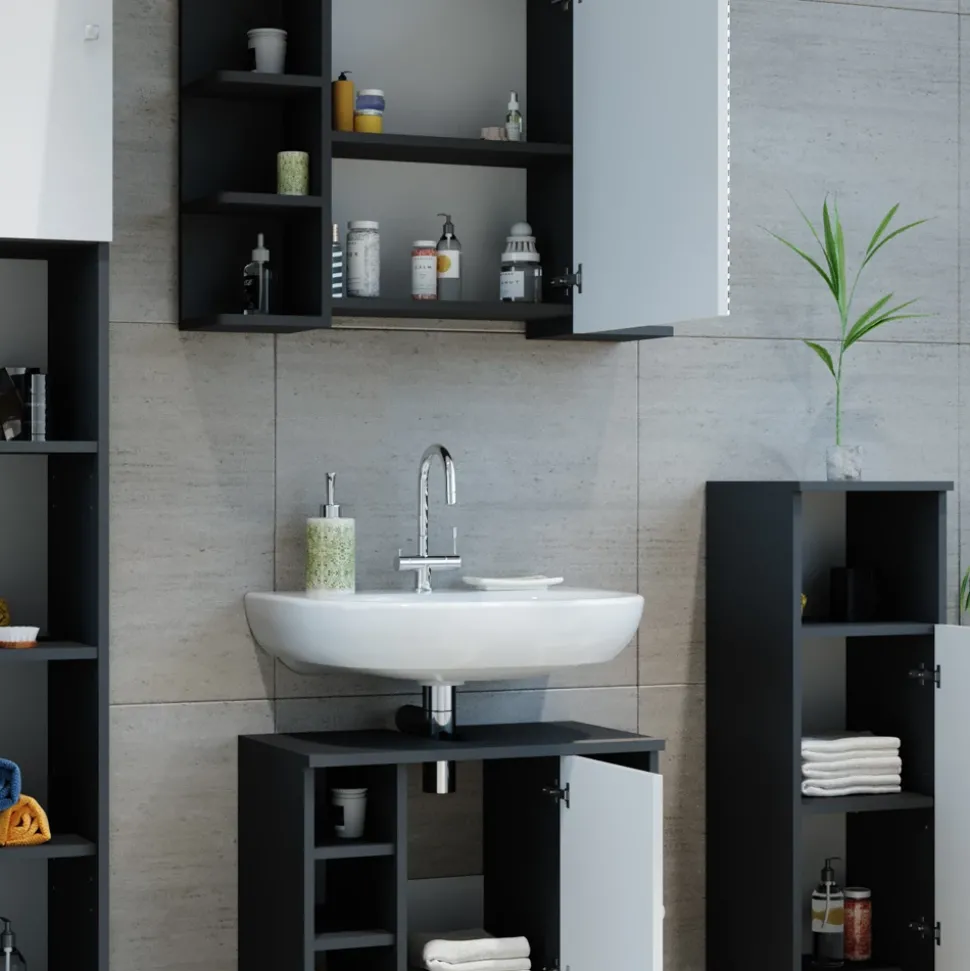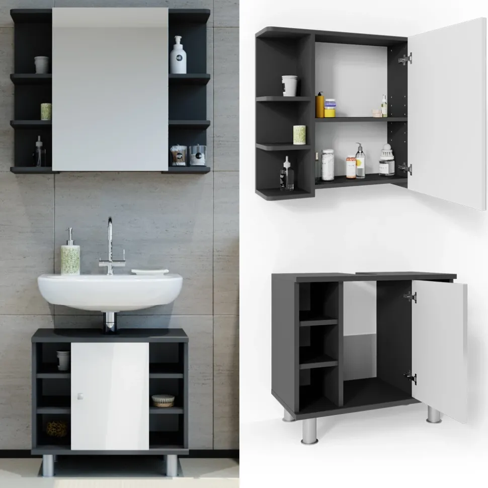 - Dieses Badezimmerschrank-Set ist ideal für kleine Räume, bietet jedoch ausreichend Stauraum für alle Ihre Badutensilien.