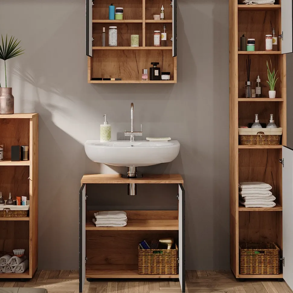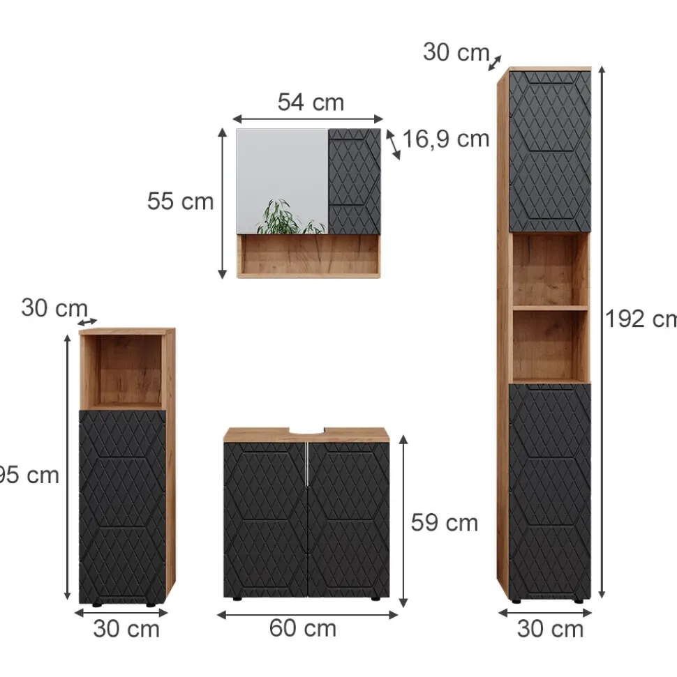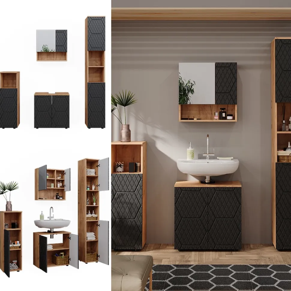 - Das Badezimmerschrank-Set bietet vielfältige Kombinationsmöglichkeiten – ideal für eine stilvolle und funktionale Einrichtung.