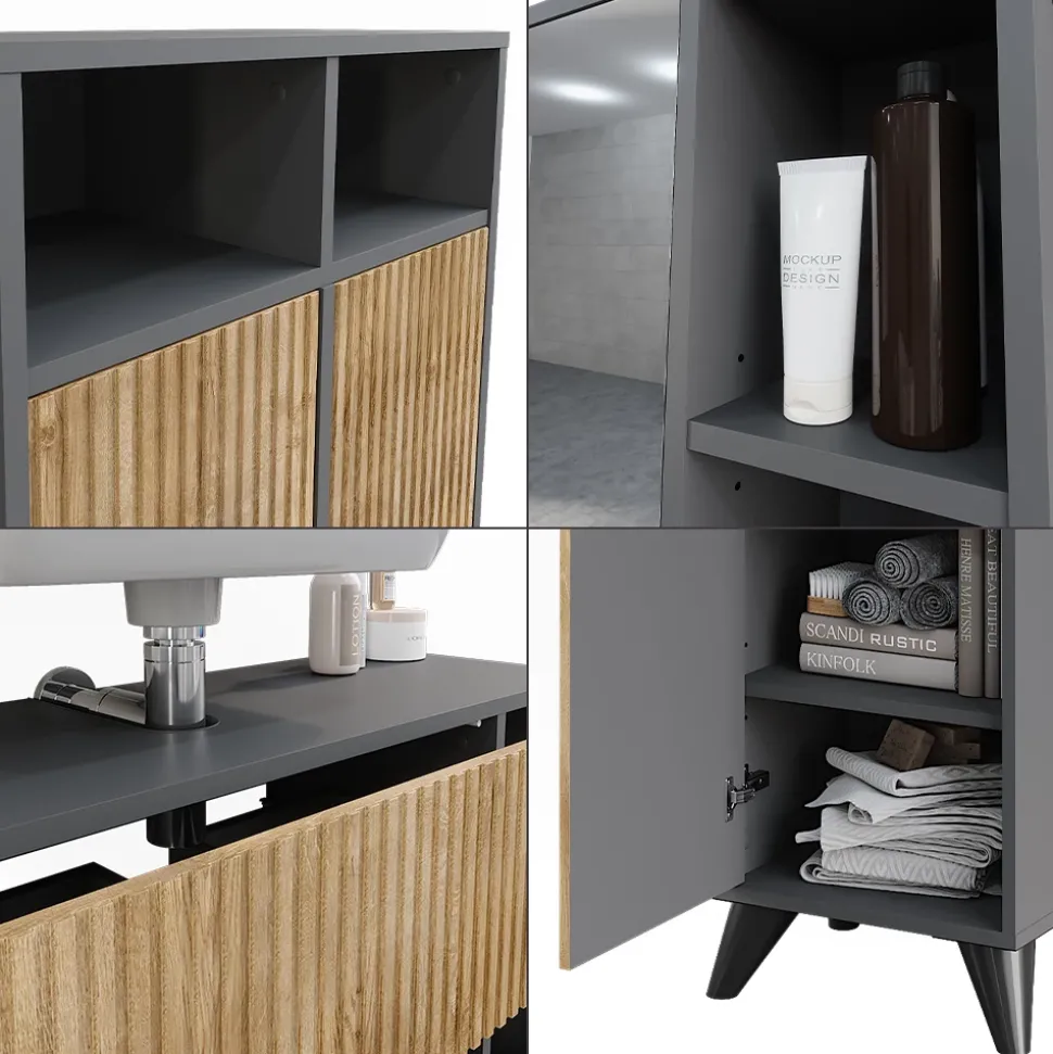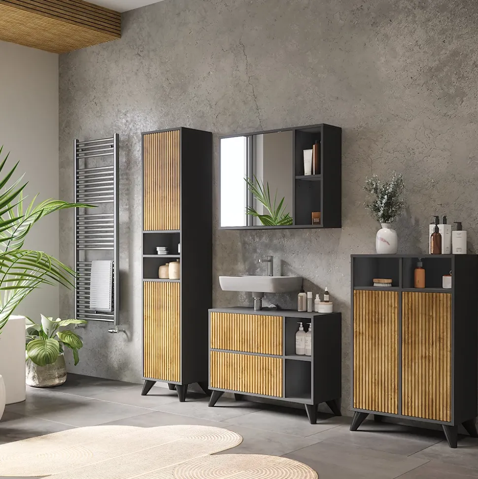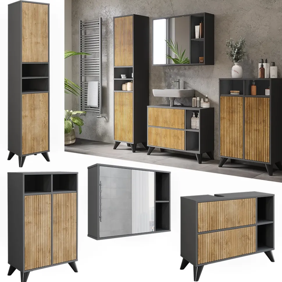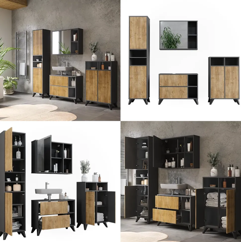 - Das Badezimmerschrank-Set bietet vielseitige Aufbewahrungsmöglichkeiten im Bad. Mit stilvollem Design und praktischer Funktionalität überzeugt es auf ganzer Linie.