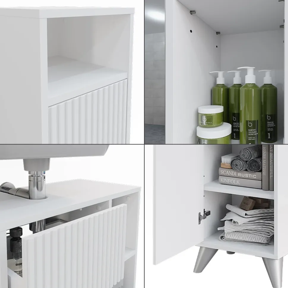 - Das Badezimmerschrank-Set bietet viel Stauraum und eine stilvolle Lösung für die Organisation Ihrer Badutensilien.