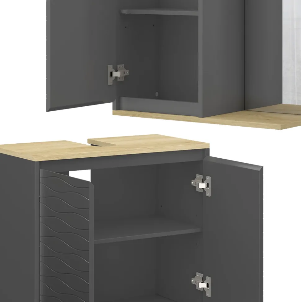 - Das Badezimmerschrank-Set bietet funktionale Aufbewahrungslösungen für Ihr Badezimmer. Mit modernem Design und praktischen Features ist es die ideale Ergänzung für jedes Bad.