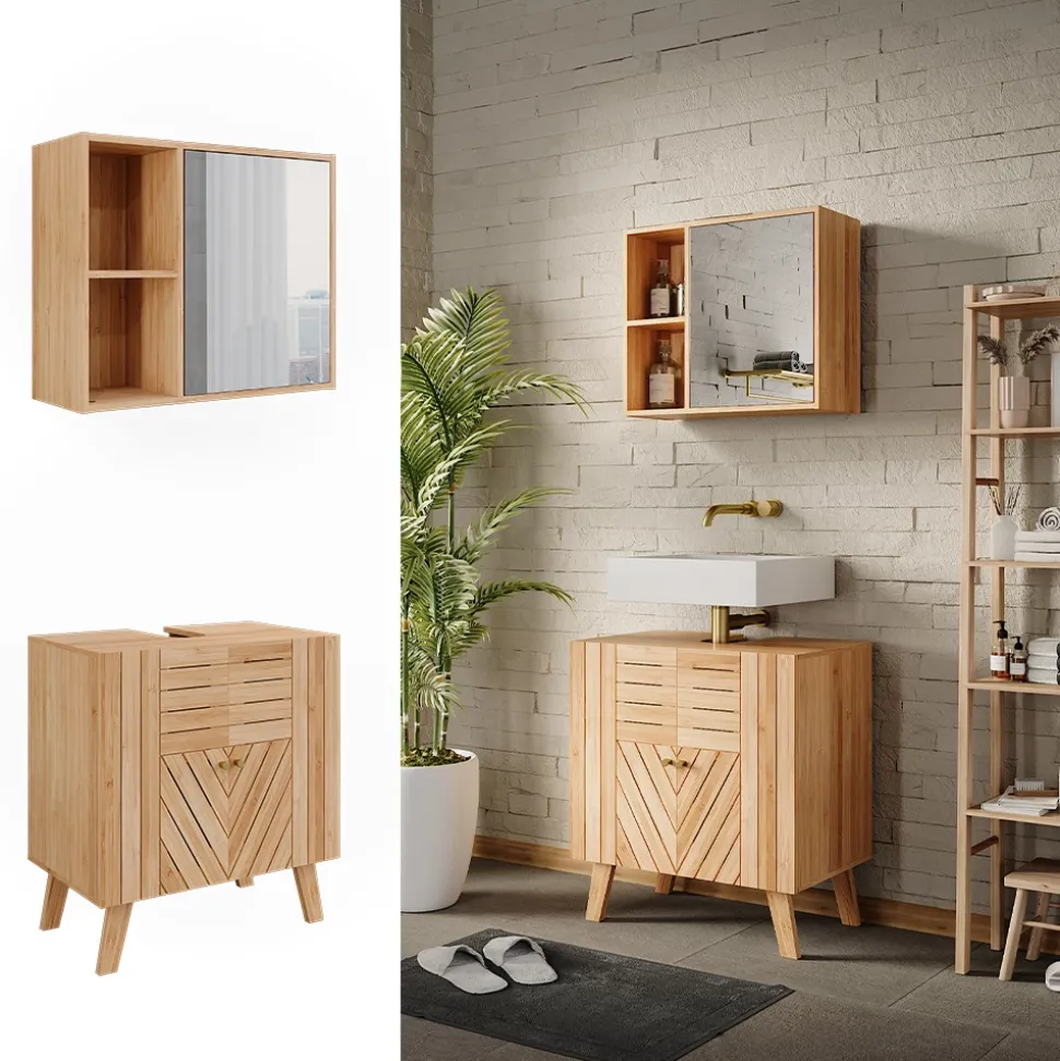 - LIEFERUMFANG: Badspiegelschrank, Waschbeckenunterschrank, Montageanleitung, Montagematerial (Dekoration nicht enthalten).
