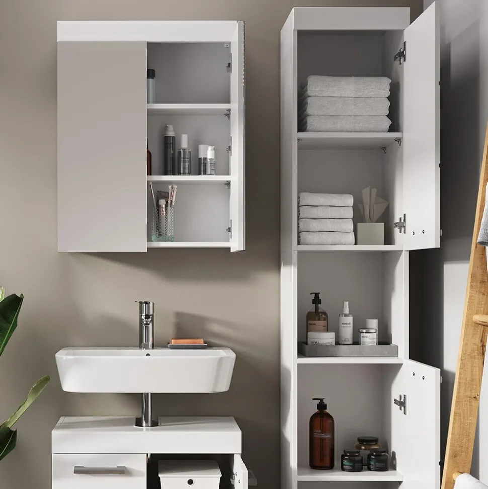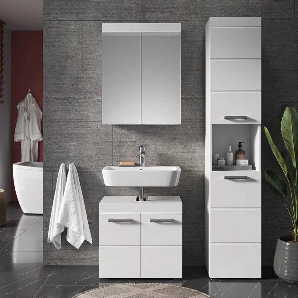 Ihr Badezimmer ist der Ort, an dem Sie Ihre Seele erfrischen und Ihre Gedanken sammeln können. Es sollte ein Ort der Entspannung und Ruhe sein. Das Luna-Badmöbel-Set mit drei Teilen und Hochschrank ist genau das, was Sie brauchen, um Ihr Badezimmer in eine Oase der Ruhe zu verwandeln. Mit originellem Design und geschlossenen Ablagen bietet dieses Set reichlich Stauraum für Ihre Badutensilien. Kombinieren Sie verschiedene Sets der Serie, um Ihrem Badezimmer eine individuelle Note zu verleihen. Ergänzen Sie dieses Set durch zusätzliche Artikel aus der Luna-Kollektion, um Ihre persönliche Wohlfühloase zu schaffen. Gönnen Sie sich das Luna-Badmöbel-Set und machen Sie Ihr Badezimmer zu einem Ort der Entspannung und Erholung.