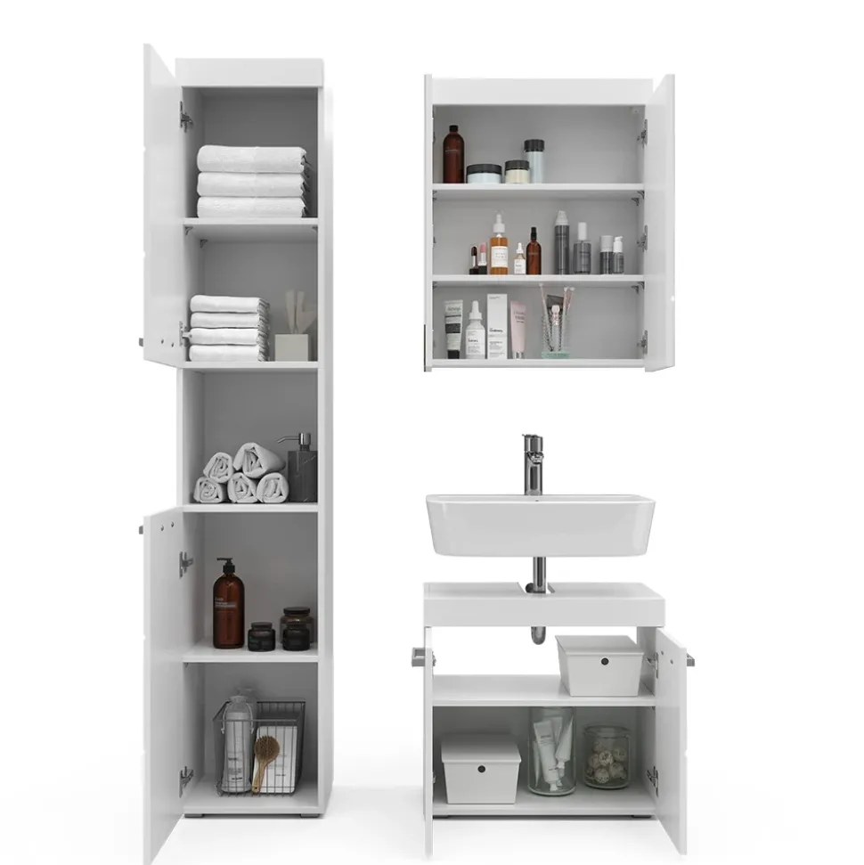 - LIEFERUMFANG: Bad Spiegelschrank, Waschbeckenunterschrank, Hochschrank, Montageanleitung, Montagematerial