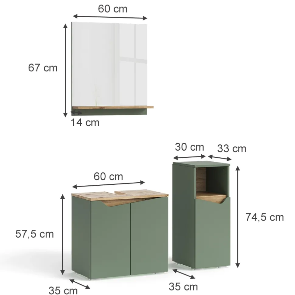 - MATERIAL: Das Badmöbel-Set besteht aus pflegeleichter Spanplatte, 16 mm, Melaminharzbeschichtung.