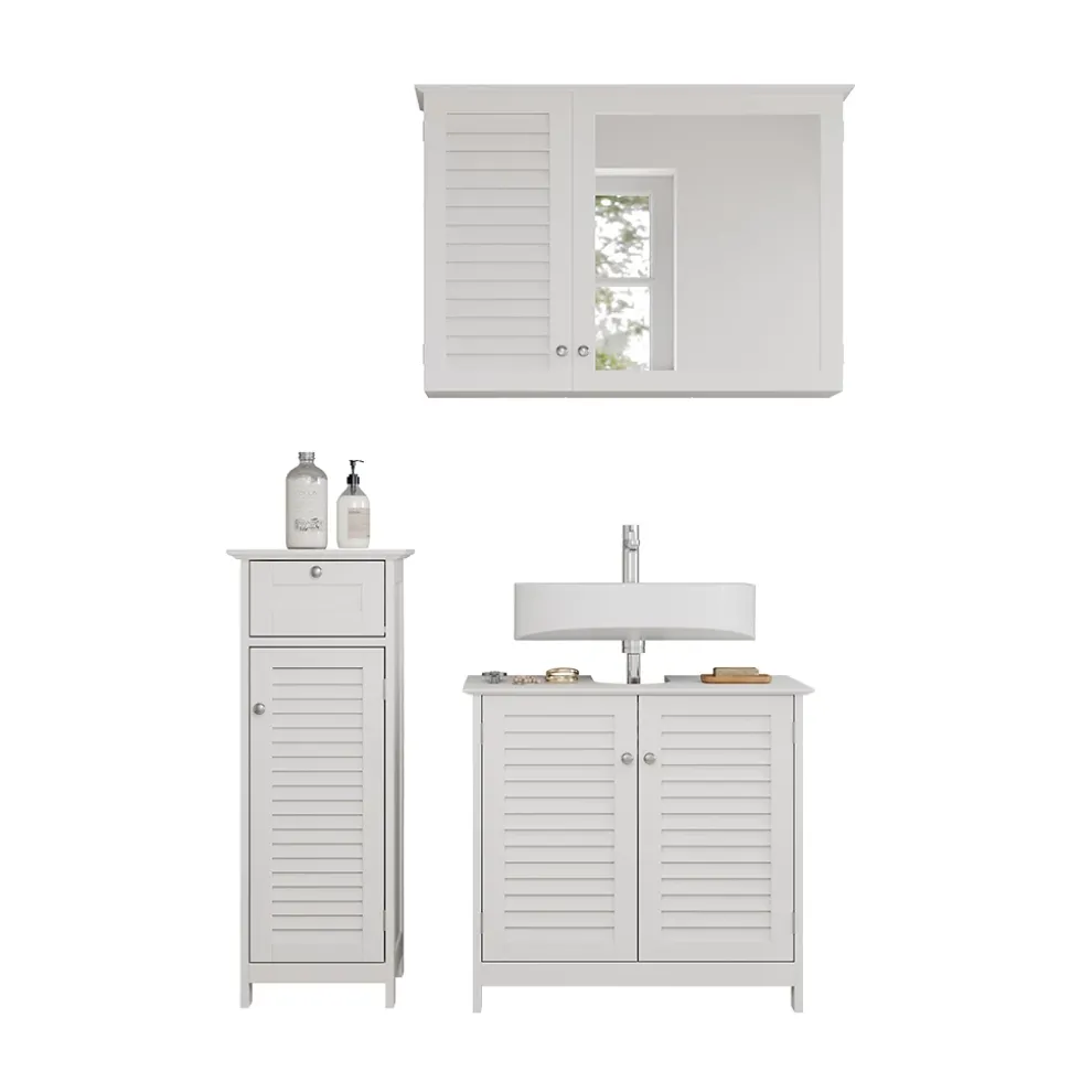 - LIEFERUMFANG: Erhalten Sie das Badmöbel-Set inklusive Montagematerial und -anleitung. Inklusive Spiegelschrank, Midischrank und Waschtischunterschrank für Ihre perfekte Badezimmereinrichtung.