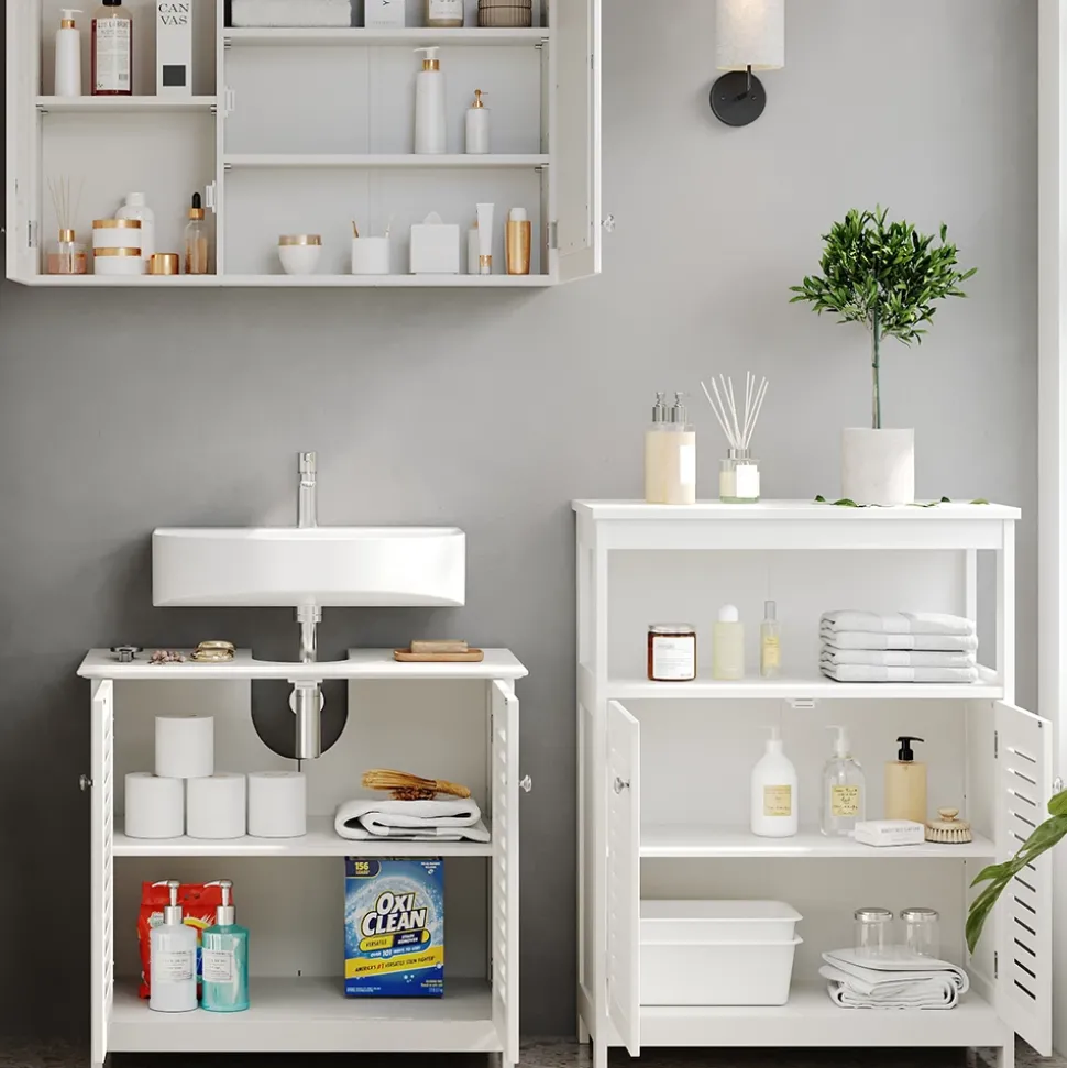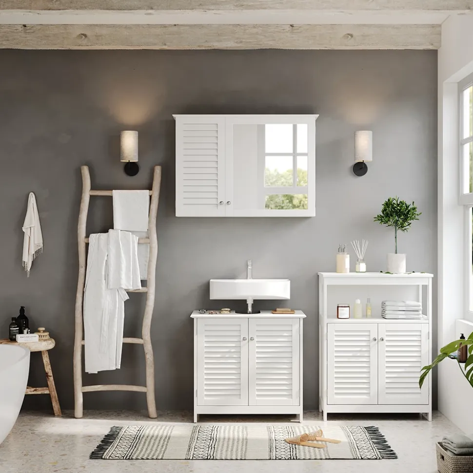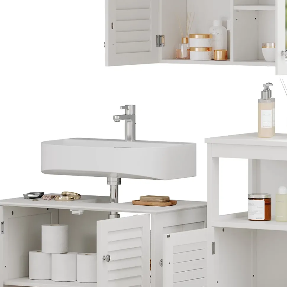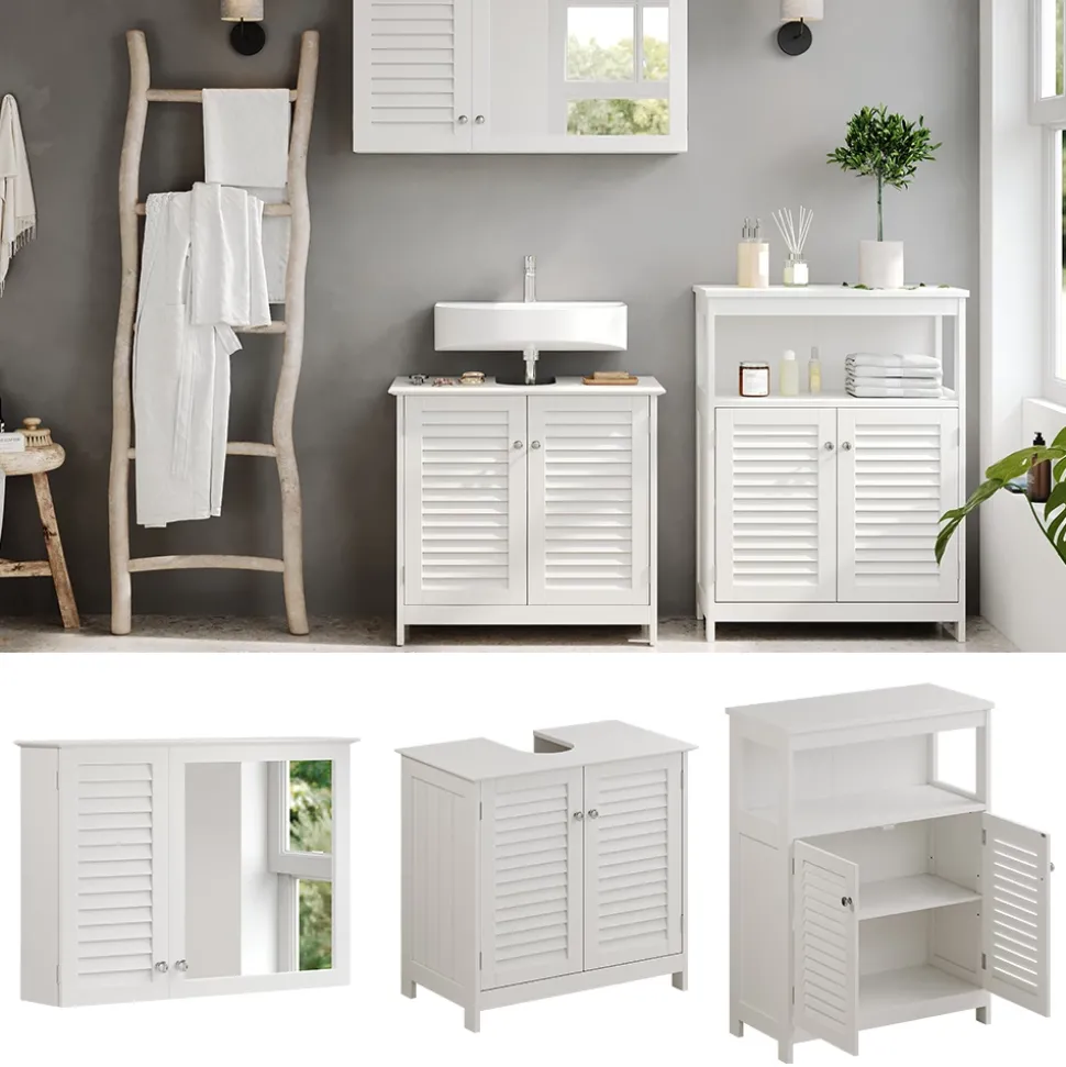 - Erleben Sie das Vicco Badmöbel-Set Riad: moderne Badserie in strahlendem Weiß mit Lamellen-Fronten. Nutzen Sie den Stauraum in Ihrem Bad mit unseren Badezimmermöbeln optimal aus.