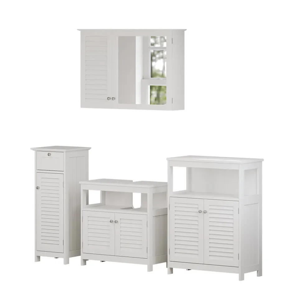 - LIEFERUMFANG: Erhalten Sie das Badmöbel-Set inklusive Montagematerial und -anleitung. Enthalten sind Sideboard, Spiegelschrank, Midischrank und Waschtischunterschrank für Ihre Badezimmereinrichtung.
