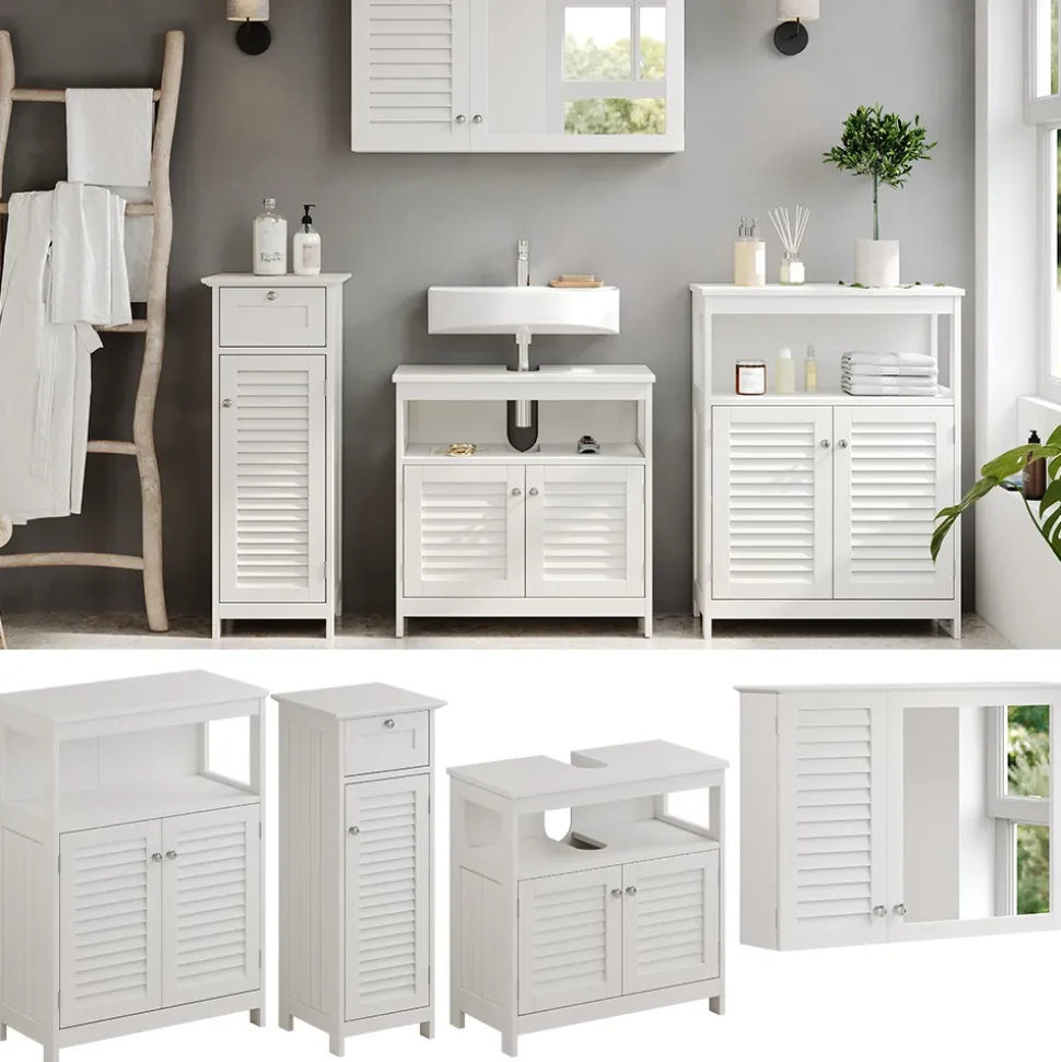 - Entdecken Sie das weiße Vicco Badmöbel-Set Riad mit modernen Lamellen-Fronten. Maximieren Sie Ihren Badezimmer-Stauraum mit unseren Badezimmermöbeln.