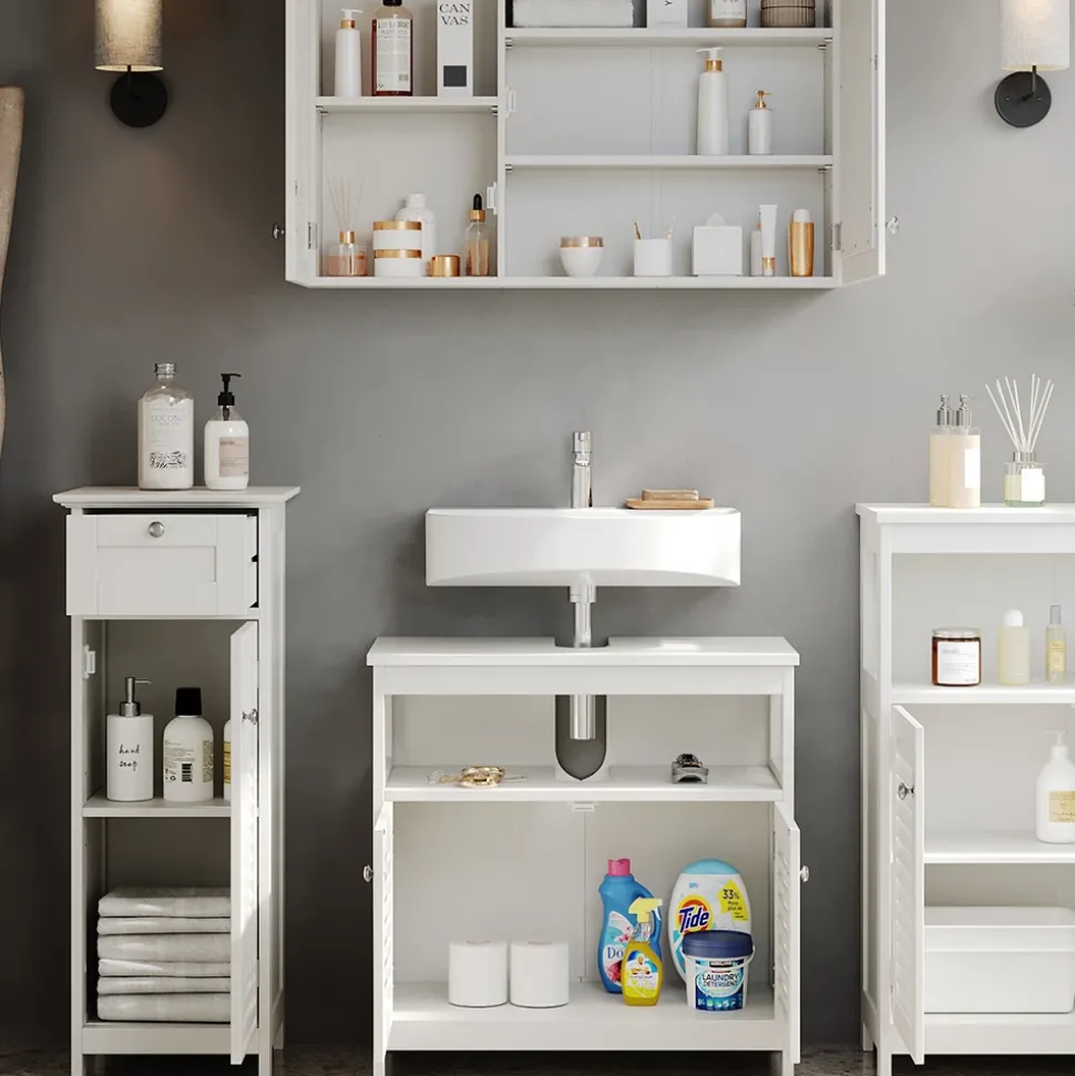 - Profitieren Sie von großzügigem Stauraum für Ihre Utensilien. Schaffen Sie Ordnung und Übersichtlichkeit in Ihrem Badezimmer. Ein absolutes Plus für Ihre Organisation.