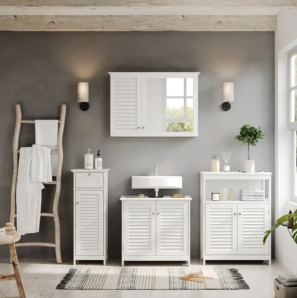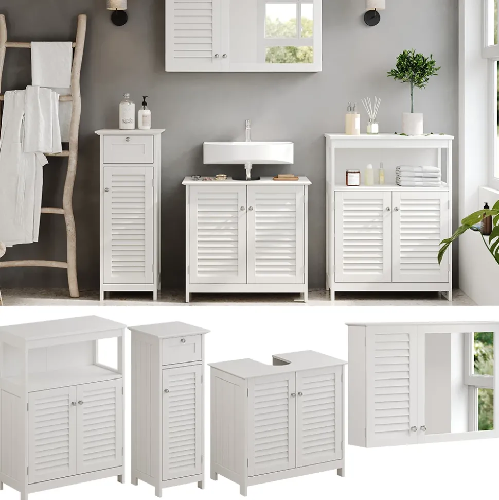 - Erleben Sie das Vicco Badmöbel-Set Riad: moderne Badserie in strahlendem Weiß mit Lamellen-Fronten. Nutzen Sie den Stauraum in Ihrem Bad mit unseren Badezimmermöbeln optimal aus.
